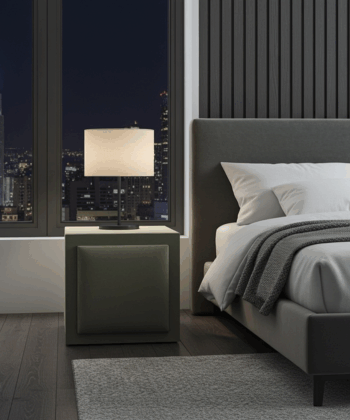Design: plush recessed front panel; modern cube silhouette; made to complement contemporary and classic bedrooms.