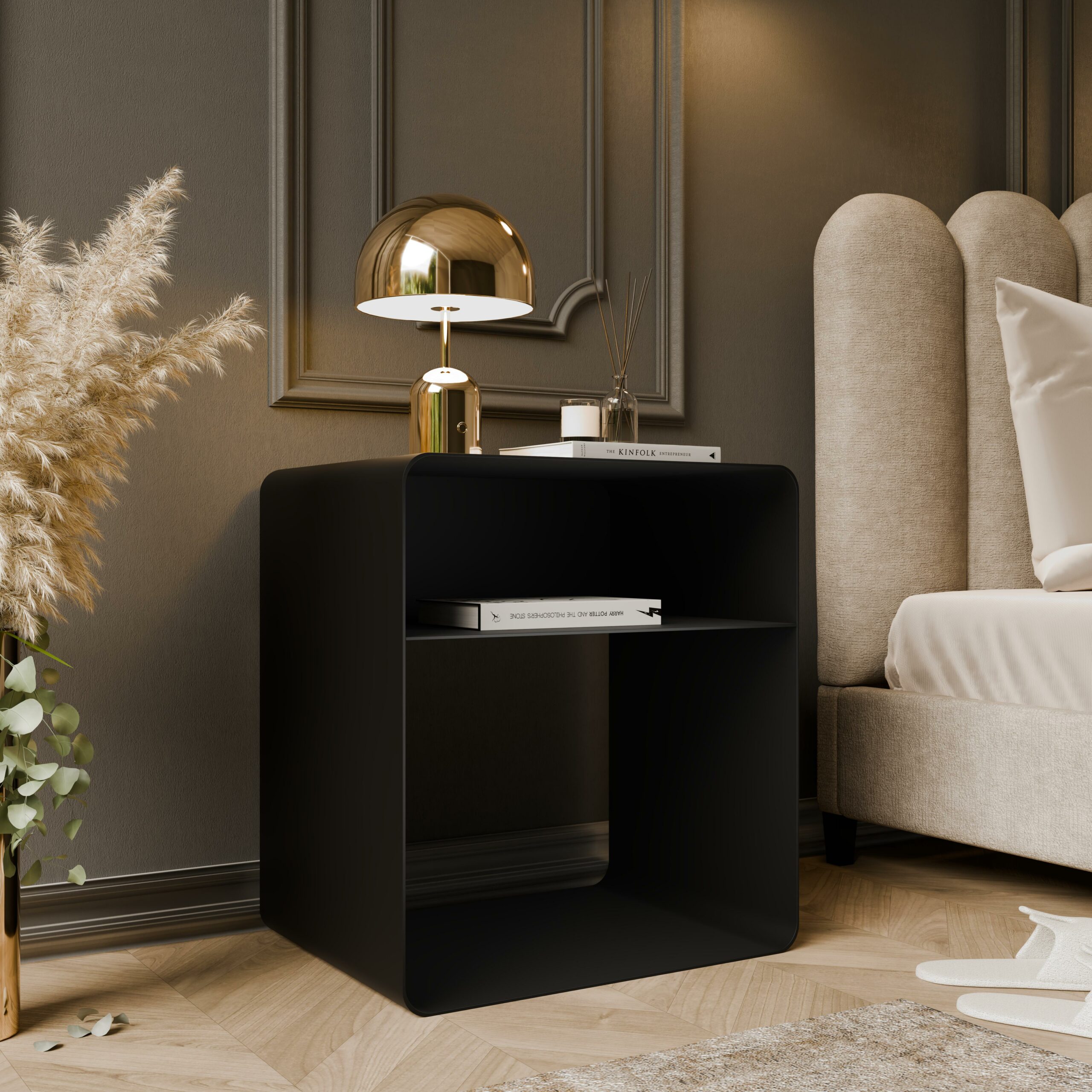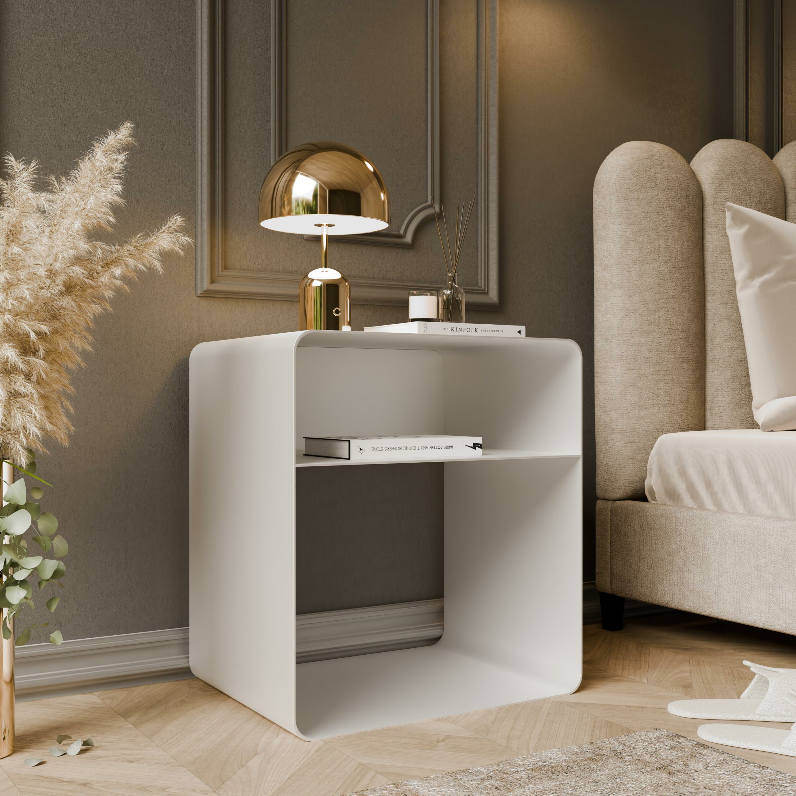 In addition, SOLO features a spacious and open design. Thanks to its clever shape, you always have quick access to books, your phone, or a bedside lamp. With the middle shelf, you can organize small objects. As a result, your nightstand remains tidy, helping you create a peaceful bedroom. Furthermore, the table is made entirely from thick 3mm steel. Because of its sturdy powder-coated surface, SOLO stays scratch-resistant and looking new for years. Subtle, rounded corners provide a soft, inviting appearance, while also helping to prevent bumps and scrapes.