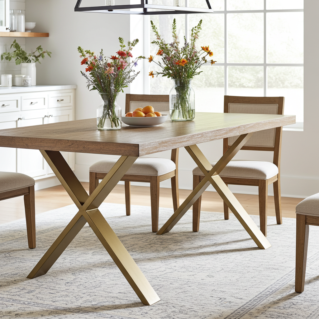 Looking to upgrade your table or start a new DIY project? These gold X-type metal table legs make it easy. Thanks to the elegant loft-style and sturdy steel, your furniture will look modern and feel strong. Their special X-shape is not only eye-catching but also gives solid support for tabletops.