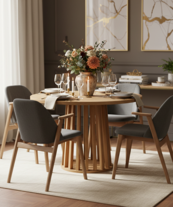 First, the round table saves space. Second, velvet adds luxury. Let’s see the details.
