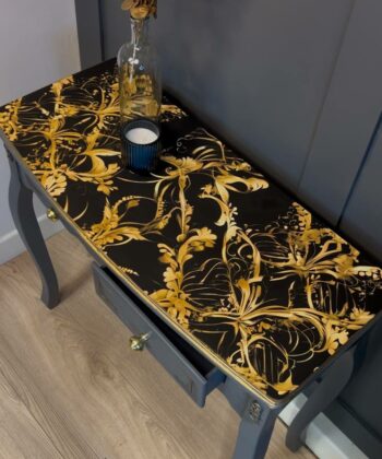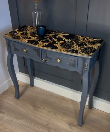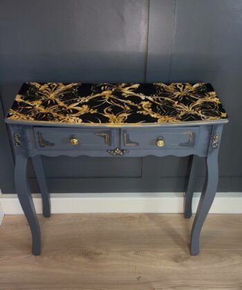 Every detail of this console table reflects expert craftsmanship. Hand-painted floral accents and a braided edge surround the tabletop, enhancing its ornate appeal. The table rests on elegantly curved legs, each ending in a golden claw-shaped foot for a dramatic, vintage-inspired finish. Measuring 80 cm wide, 40 cm deep, and 75 cm high, the Belle Époque Console Table fits beautifully in entryways, hallways, or as a statement piece in your living room.
