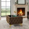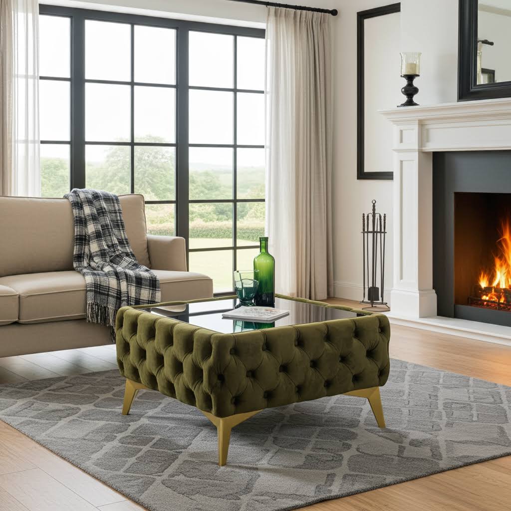 Bring a touch of nature-inspired luxury and timeless style to your home with the Chester Lux Amber Green Coffee Table 63x63x35cm square velvet with glass.