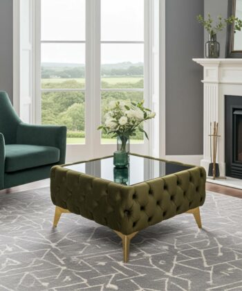 Looking for ideas to style your Chester Lux Amber Green Coffee Table 63x63x35cm square velvet with glass? Check out this coffee table styling guide for expert tips on arranging books, trays, and decorative accents (outbound link).