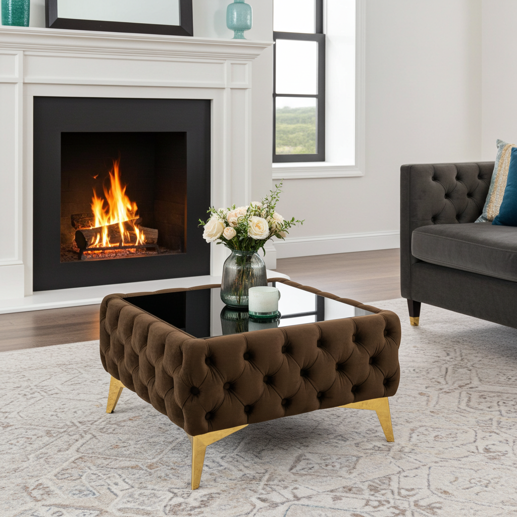 Chester Lux Brown Coffee Table 63x63x35cm Square Velvet with Glass