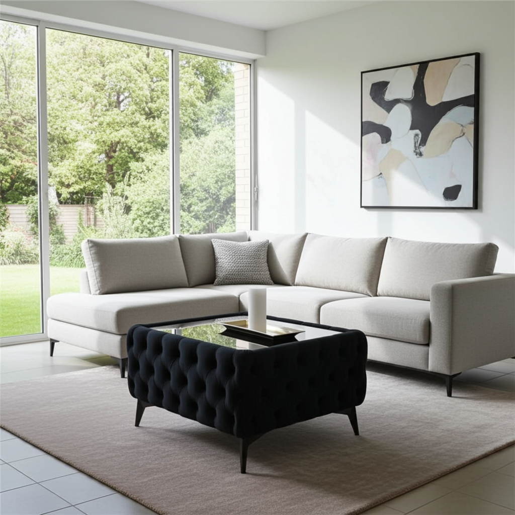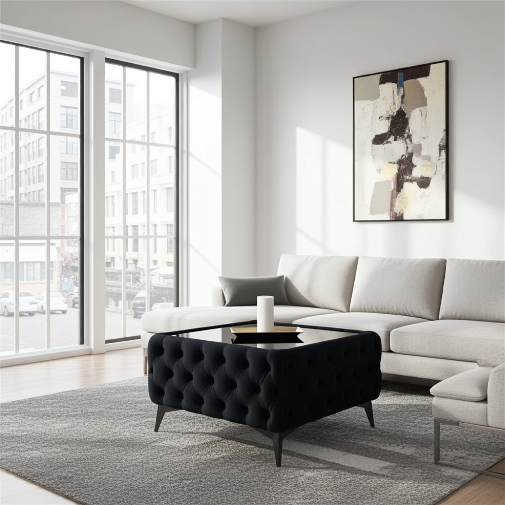 Chester Lux Coffee Table Velvet Rectangle with Glass Black