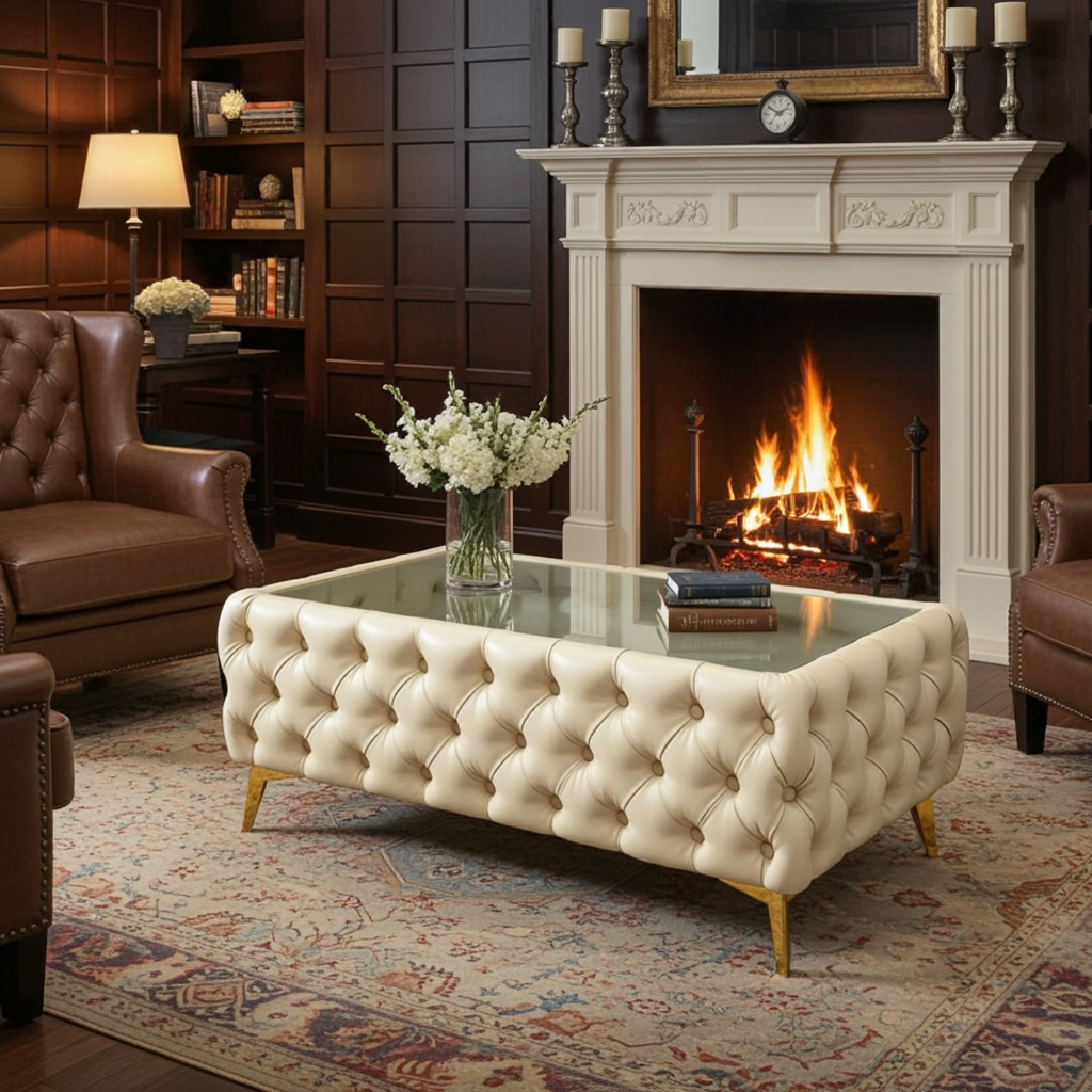 The Chester Lux Coffee Table is an elegant piece of furniture that combines classic Chesterfield-inspired design with modern elements. Here’s a refined description of the product:The Chester Lux Coffee Table features: