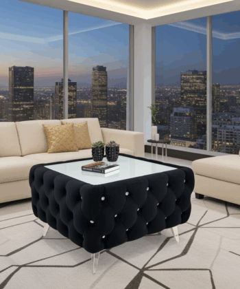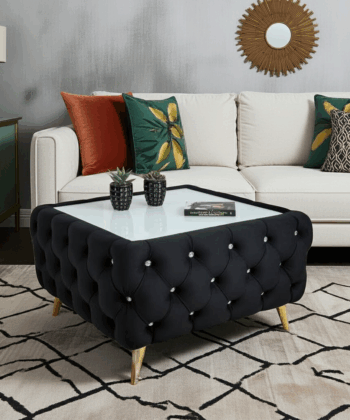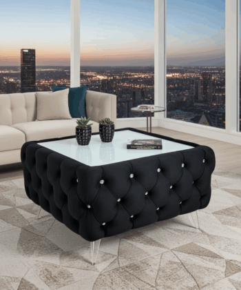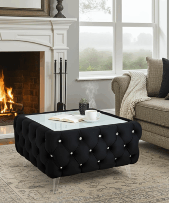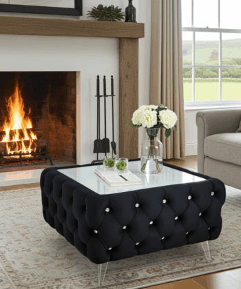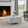 This coffee table showcases meticulous craftsmanship with deep button tufting and premium velvet fabric that maintains its luxurious appearance over time. The sturdy metal legs provide excellent stability while adding a touch of glamour to your space.