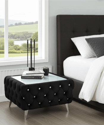 The glass top offers practical surface space for drinks, books, and decorative items while protecting the velvet base1. This sophisticated surface enhances the modern character of the piece, offering both aesthetic appeal and practical functionality1. The compact square design fits perfectly in both large and intimate seating areas throughout your Irish home.
