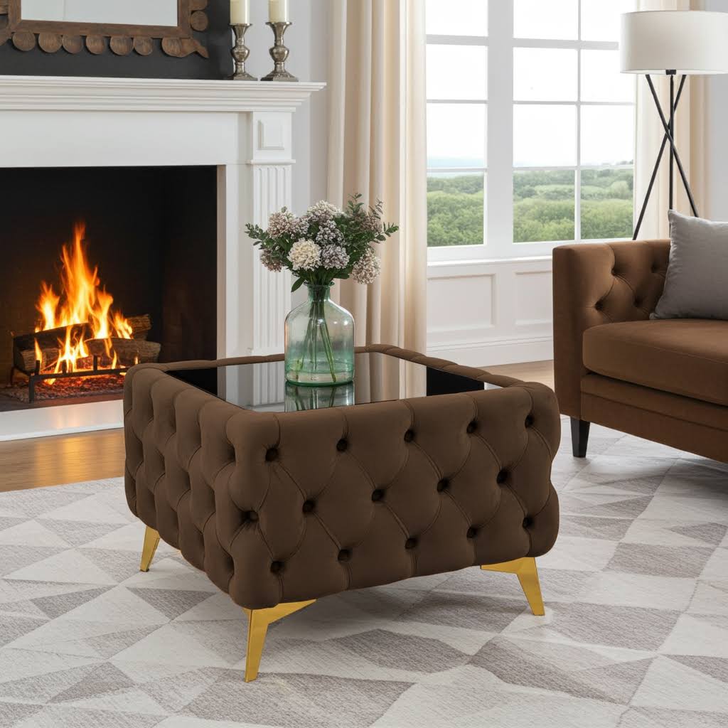 Chester Lux Square Brown Coffee Table 63x63x45cm Velvet with Glass