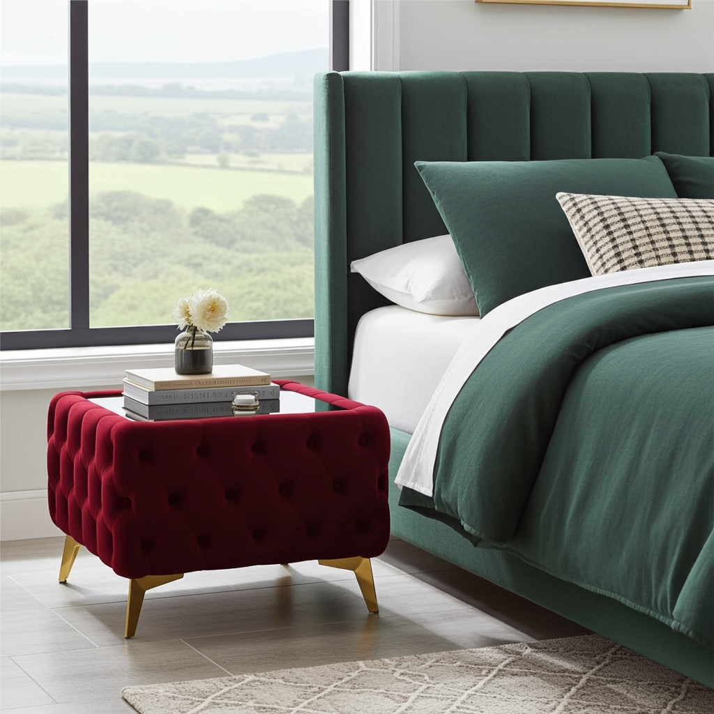This coffee table fits well in living rooms, bedrooms, or offices. You can pair it with matching velvet sofas or armchairs for a complete look. The ruby red color works well with gold accents, dark wood, or neutral tones. As a result, you can easily match it with your existing décor.