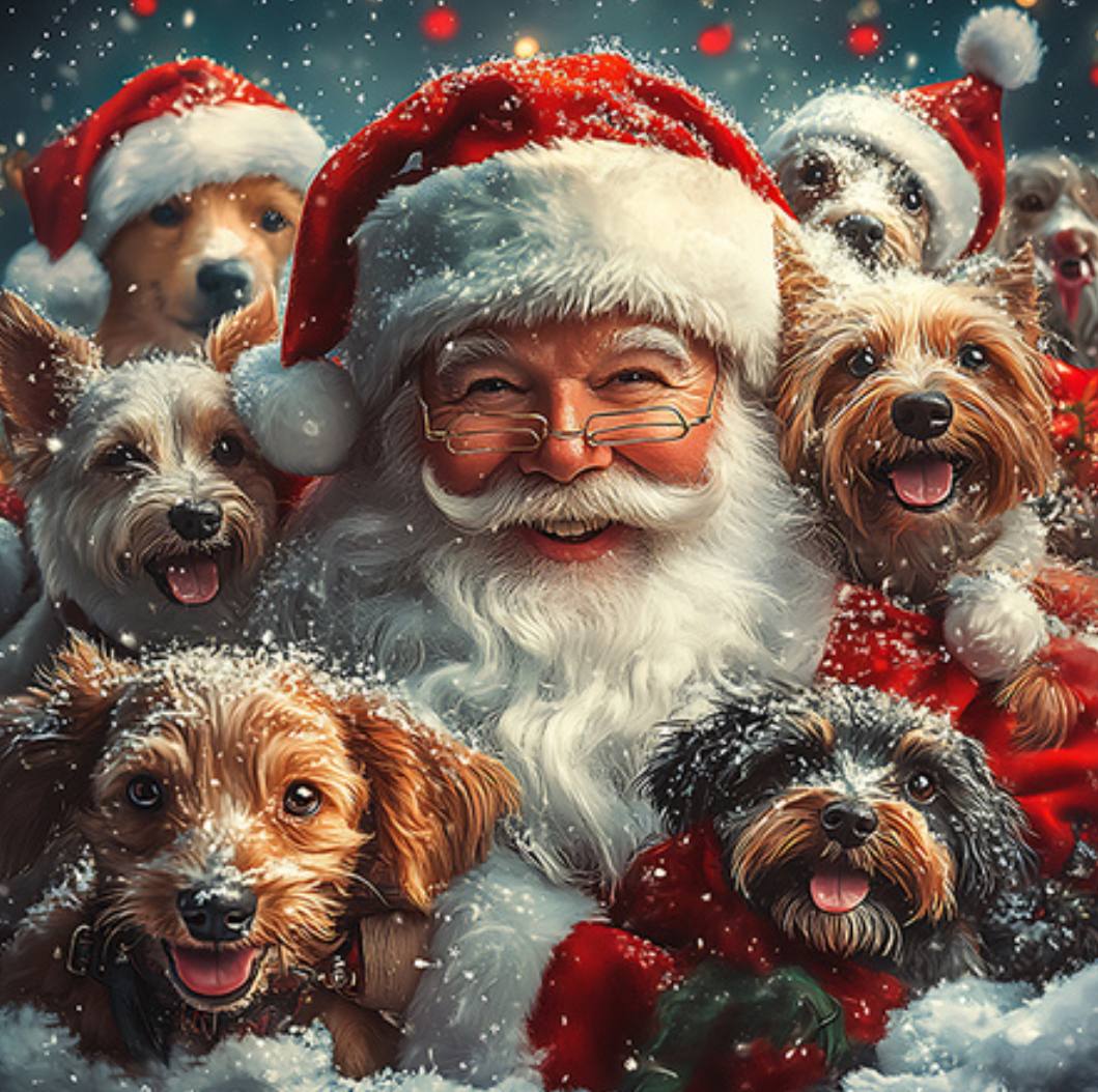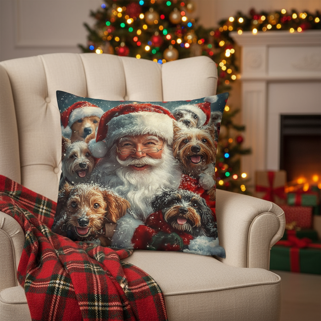 Heartwarming Christmas Pillow Featuring Santa Surrounded by Dogs