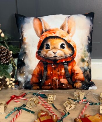Each cushion is meticulously crafted from premium, soft-to-the-touch fabric, ensuring both exceptional comfort and long-lasting durability. The high-quality digital print captures every delicate brushstroke and the bunny’s endearing expression with stunning clarity and vibrant colour. More than just a pillow, this is a piece of art that adds a unique and heartwarming touch to your festive celebrations. Measuring 45×45 cm, it is perfectly sized to be a statement piece or to layer with other holiday cushions. The cover includes a hidden zipper for easy removal and is machine washable for effortless care.