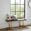 The bench displays a stunning lacquered wooden top in rich dark walnut tones with natural wood grain patterns clearly visible through the protective finish. Subsequently, it delivers exceptional durability and sophisticated visual appeal. Meanwhile, the deep brown walnut colour adds warmth and natural elegance to your space. Specifically, this classic wood finish harmonises beautifully with both modern and traditional interior schemes. Therefore, it establishes a refined accent piece for diverse decorating approaches.