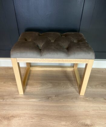 Luxury Grey Velvet Bench with Natural Alder Frame – Handcrafted Irish Quality