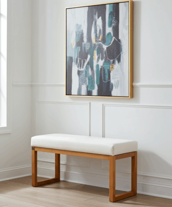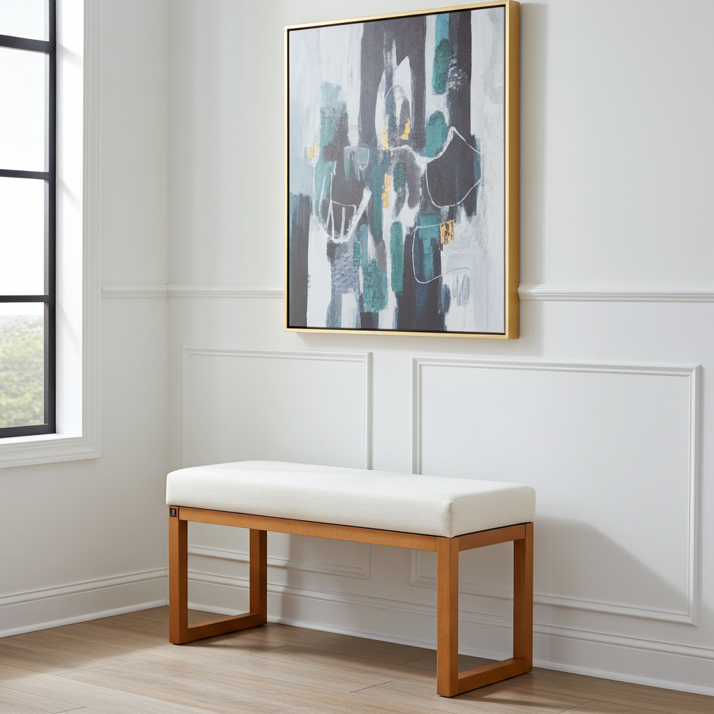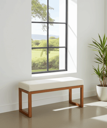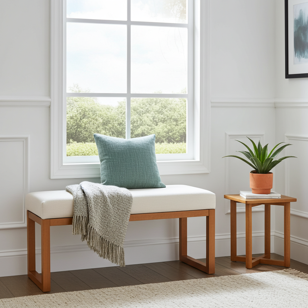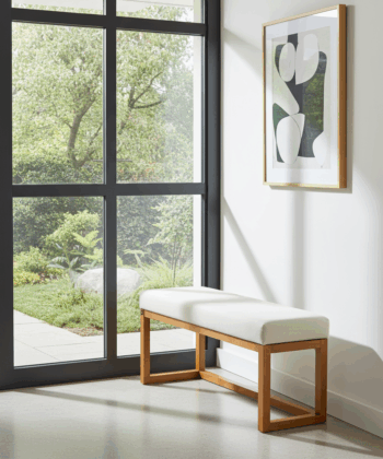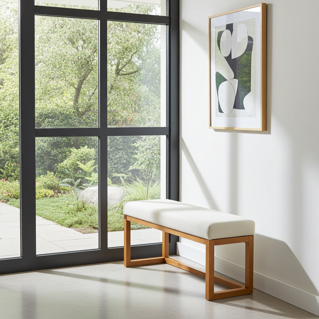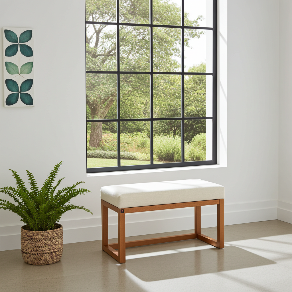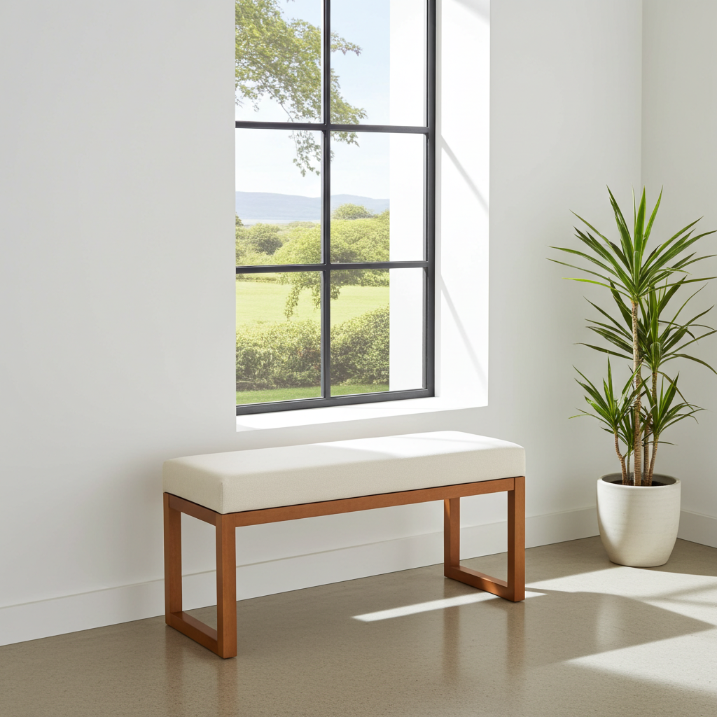 Luxury Cream Velvet Bench with Natural Alder Wood Frame – Perfect for Contemporary Irish Homes