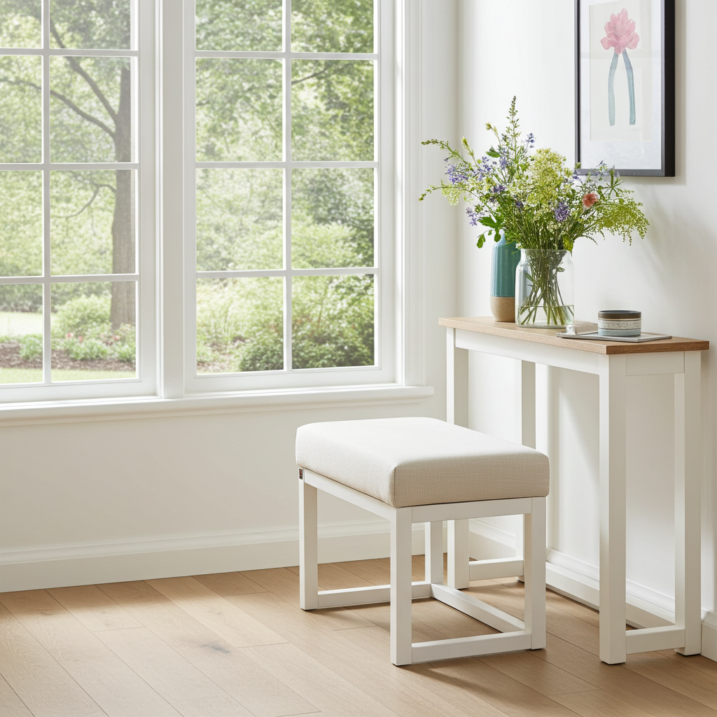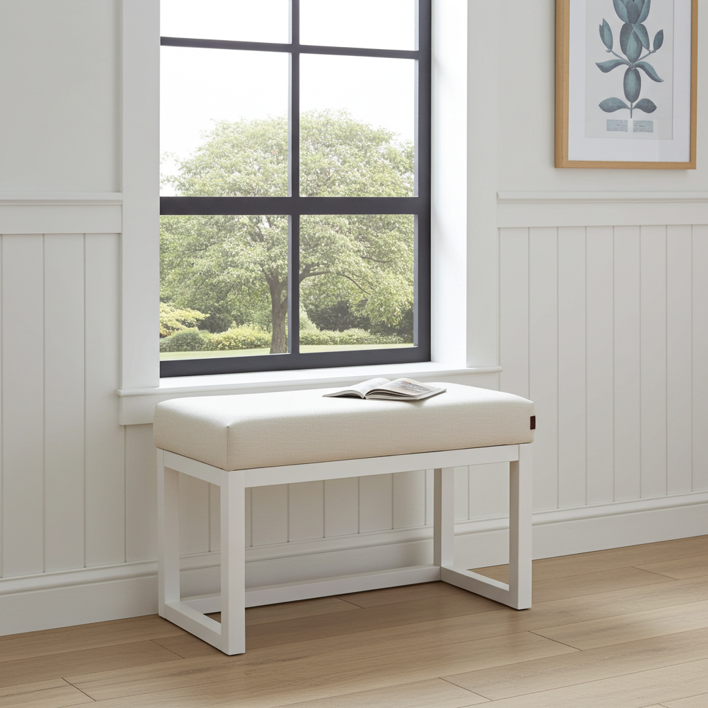 White Velvet Bench 60x40cm – Modern Minimalism and Custom Alder Frame for Irish Homes