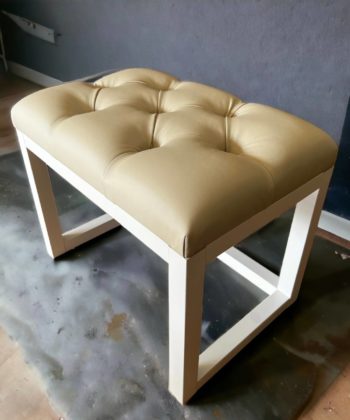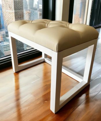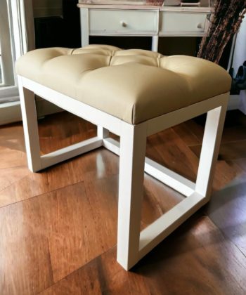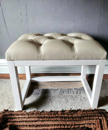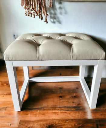 Premium Handcrafted Cream Eco Leather Bench with Elegant White Wooden Frame for Irish Homes