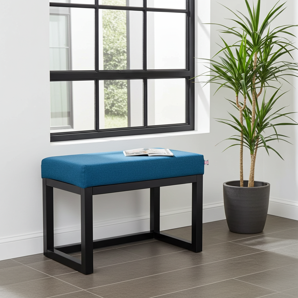 Refresh your interior with modern edge using this eye-catching teal bench. The vibrant seat in durable upholstery pairs beautifully with a robust, powder-coated black frame. At just 60x40x50cm, this bench delivers comfort and bold style, while fitting easily into hallways, bedrooms, or small living rooms. Its clean lines and contemporary contrast instantly lift minimalist or industrial décor.