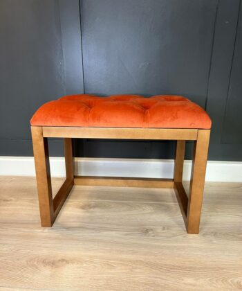 Premium Orange Velvet Bench with Natural Alder Wood Frame – Handcrafted Irish Furniture