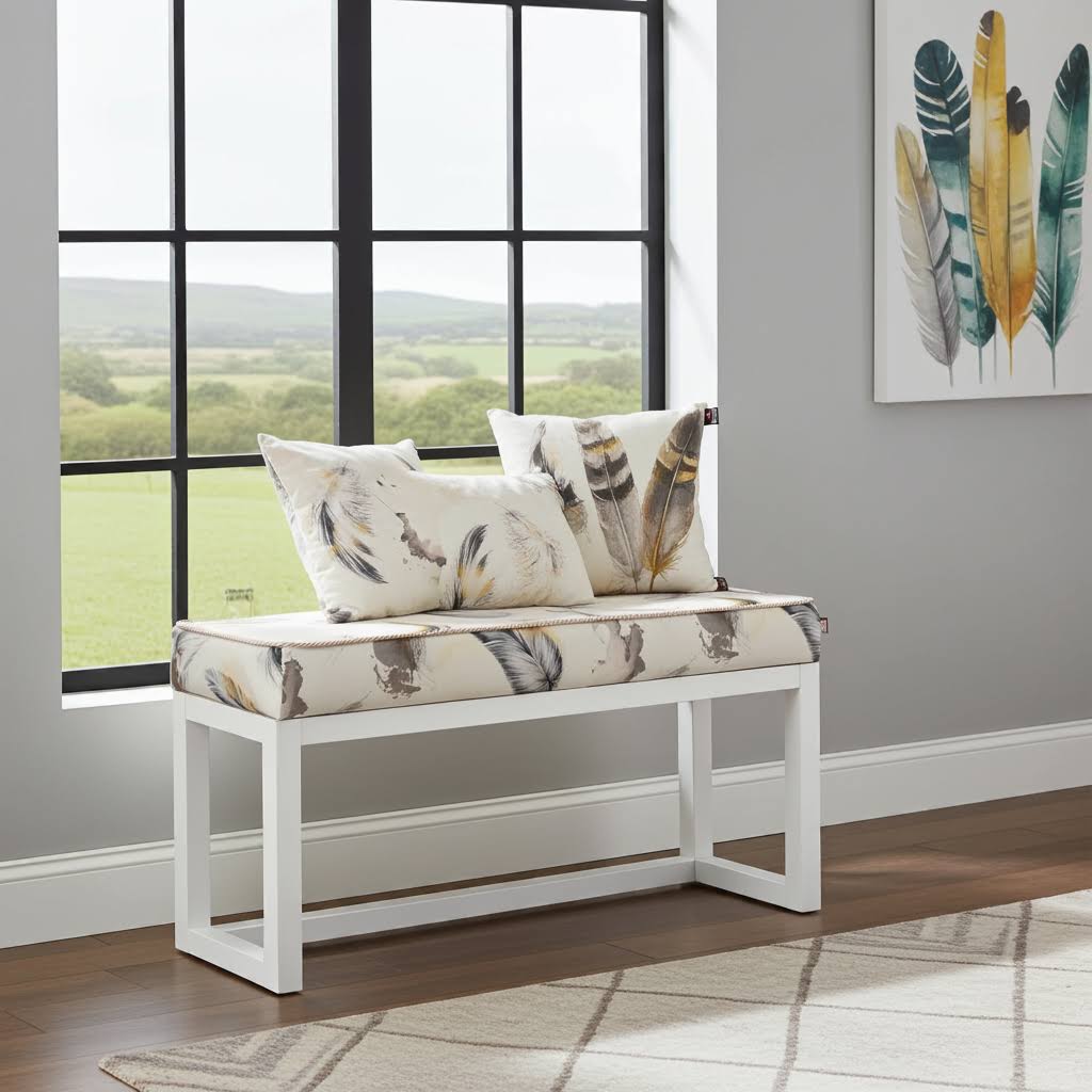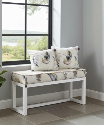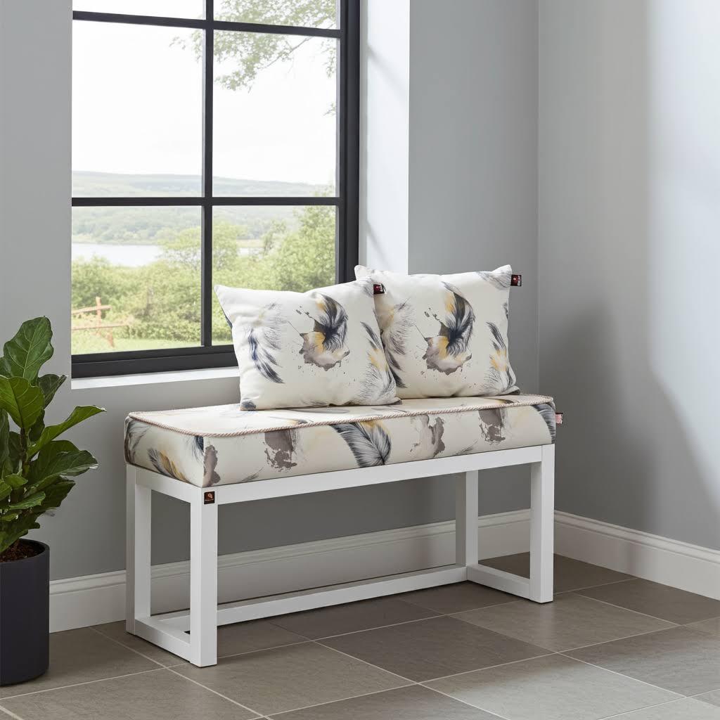 Premium Handcrafted Wooden Bench Featuring Woodland Deer Pattern Velvet with White Alder Wood Frame – Country Elegance for Contemporary Irish Homes