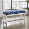 This stunning wooden bench brings dramatic botanical beauty indoors through its rich dark floral velvet upholstery beautifully complemented by a pristine white alder wood frame. The sophisticated floral design features vibrant blooms against a deep navy background that creates an atmosphere of elegant mystery while the clean white wooden structure adds Scandinavian sophistication to any interior space.