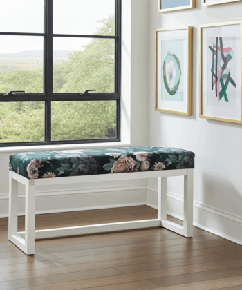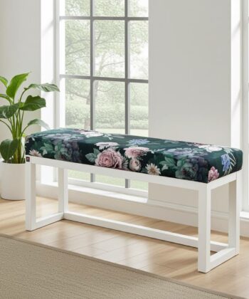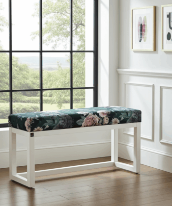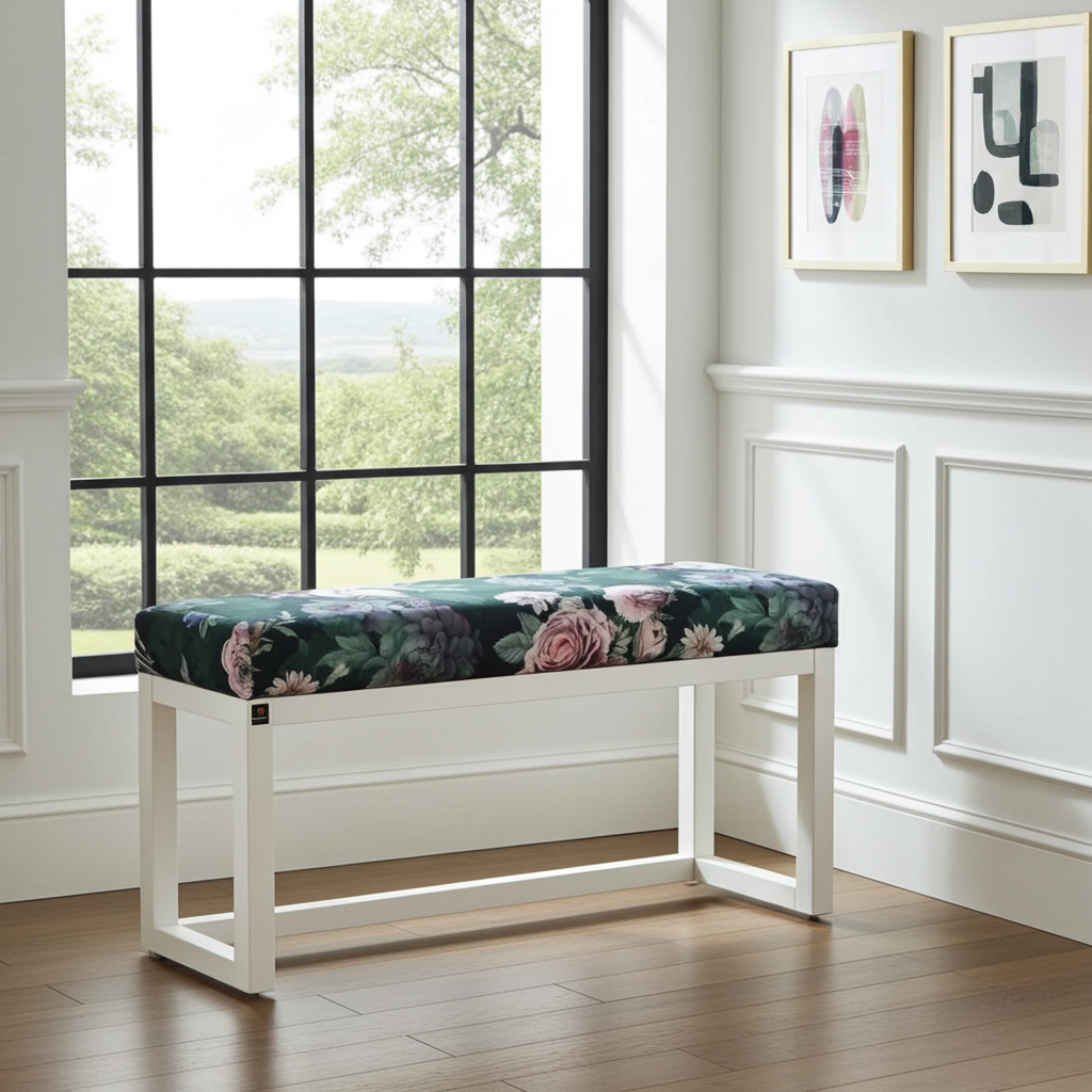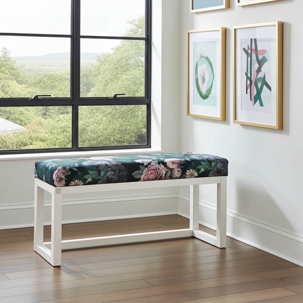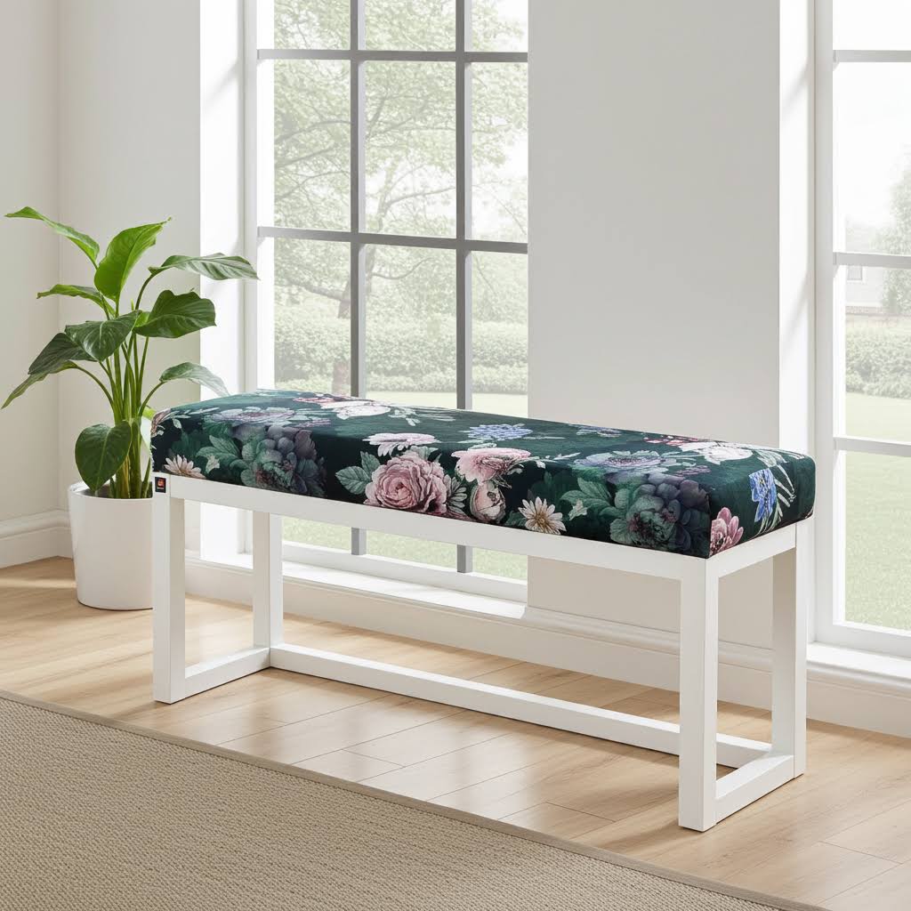 Premium Handcrafted Wooden Bench Featuring Dark Botanical Floral Velvet with White Alder Wood Frame – Sophisticated Elegance for Contemporary Irish Homes