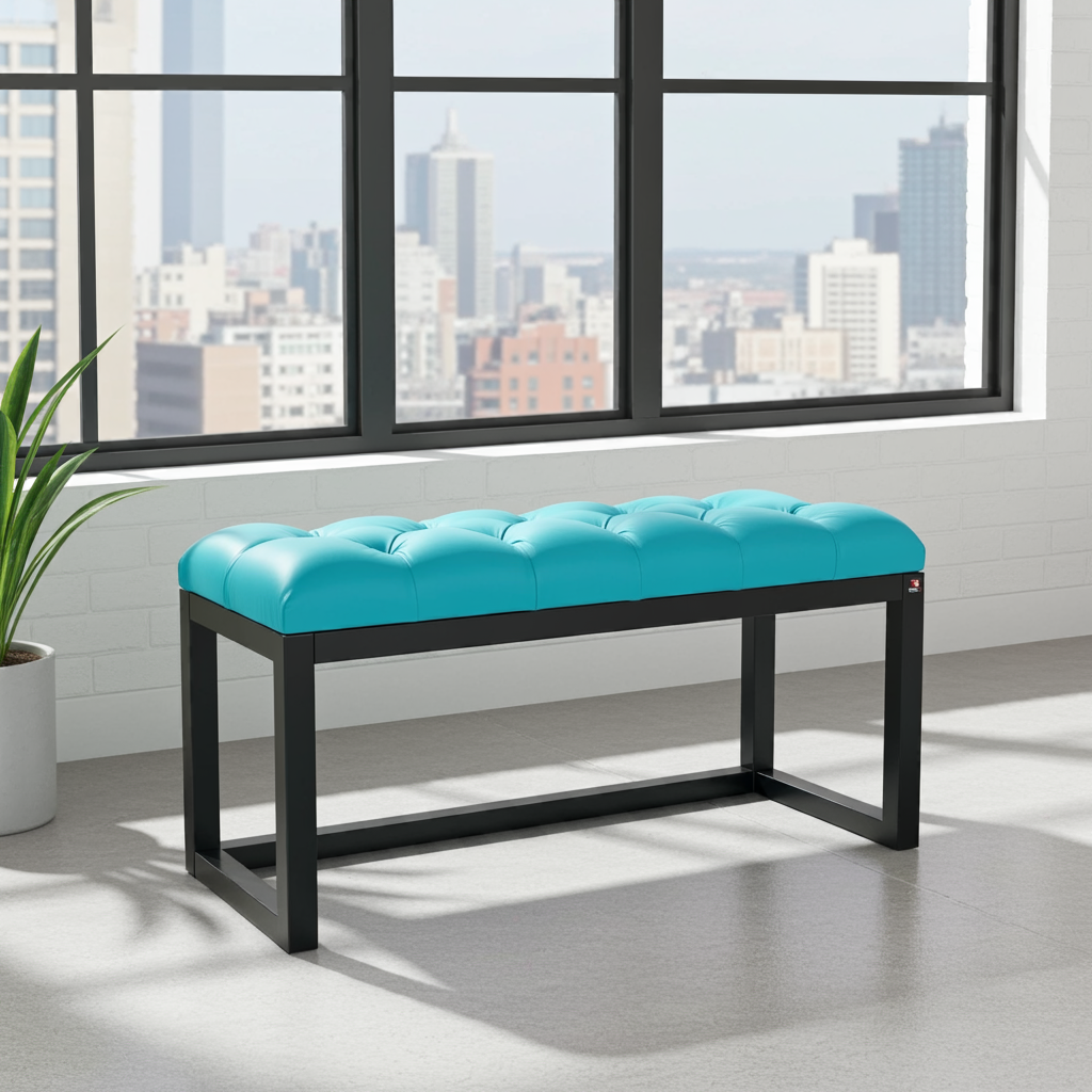 Premium Handcrafted Bench Featuring Vibrant Turquoise Velvet with Black Metal Cube Frame – Contemporary Elegance for Modern Irish Homes