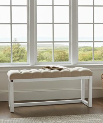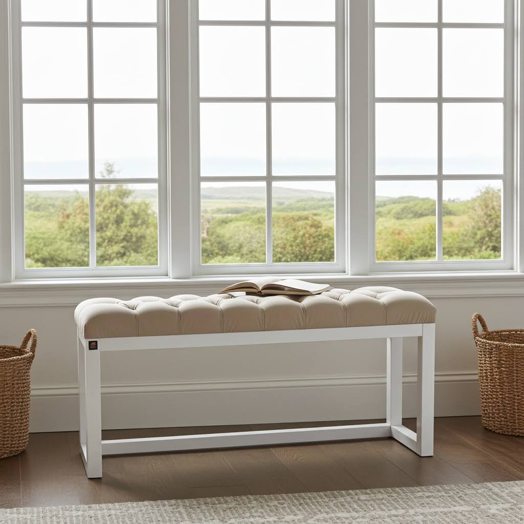Classic Wooden Bench – Button-Tufted Cream Design with White Alder Construction for Timeless Irish Living