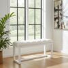 Cream Tufted Wooden Bench 100x30cm – White Alder Frame