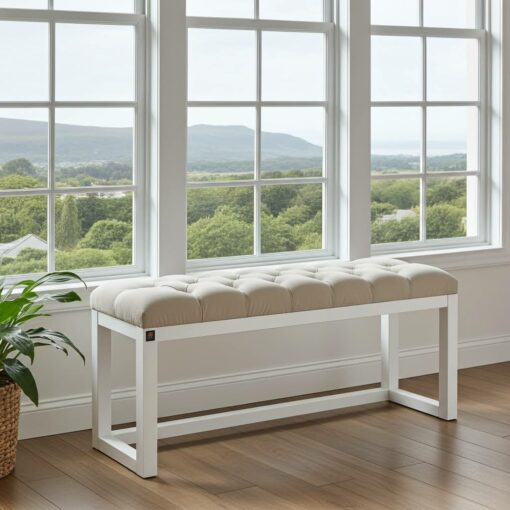 Classic Wooden Bench – Button-Tufted Cream Design with White Alder Construction for Timeless Irish Living