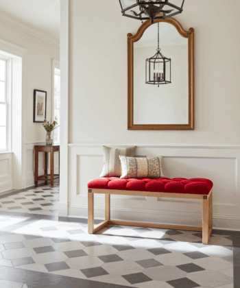 The premium velvet showcases expert craftsmanship with perfectly aligned diamond patterns throughout. Additionally, the rich red tone adds warmth and dramatic flair to neutral spaces. The sustainable alder wood construction delivers exceptional stability and natural beauty. Furthermore, the natural finish highlights the wood’s organic grain patterns beautifully.
