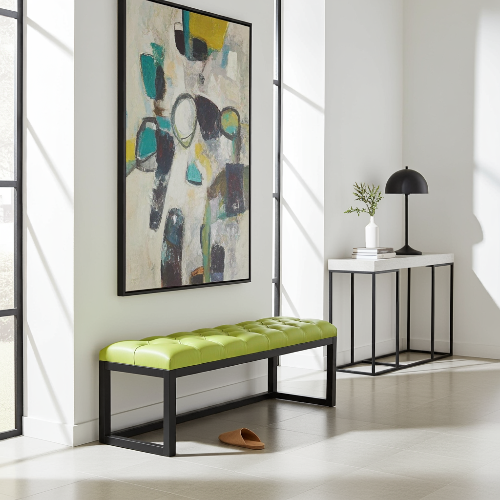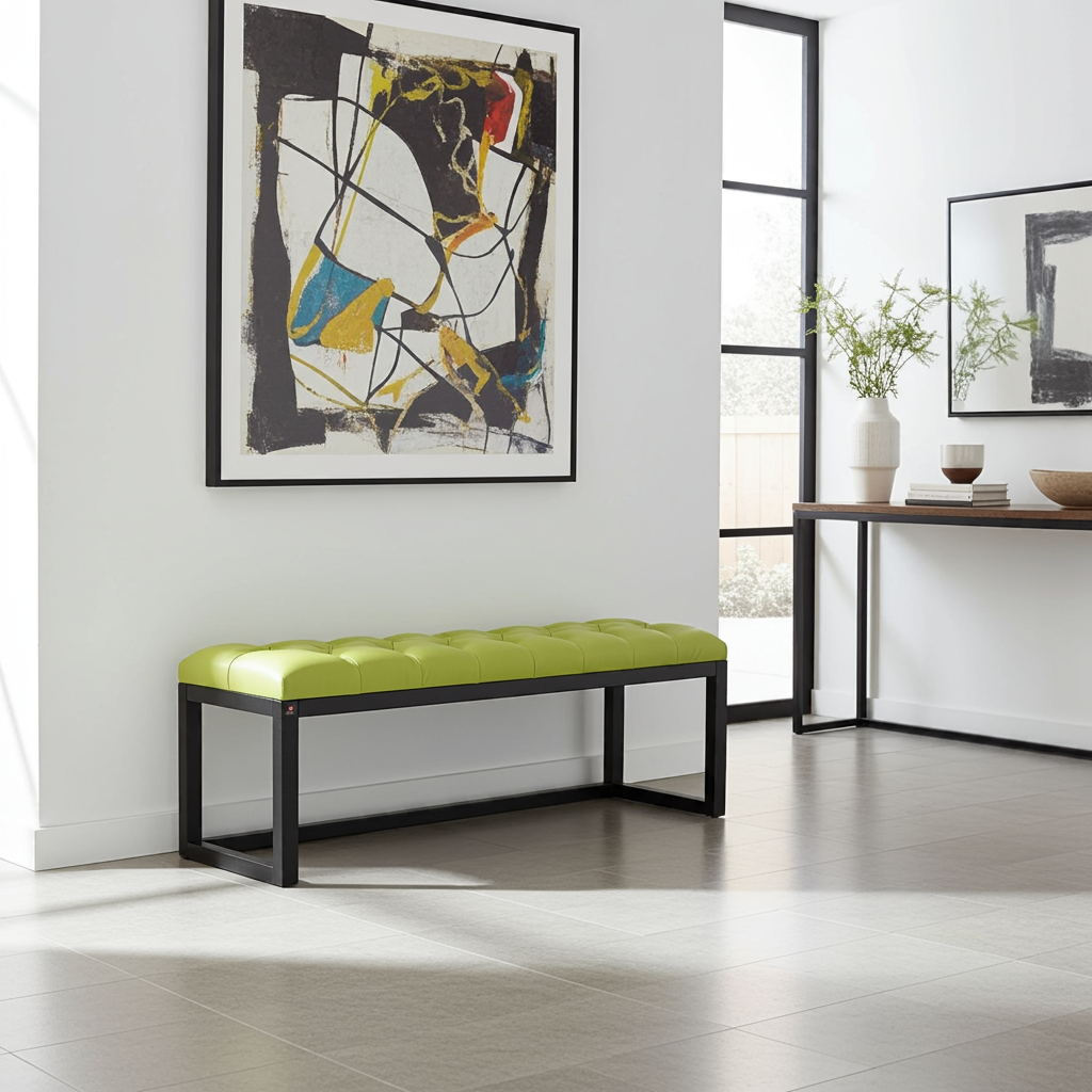 Lime Green Eco-Leather Tufted Bench 140x40cm – Black Alder Frame