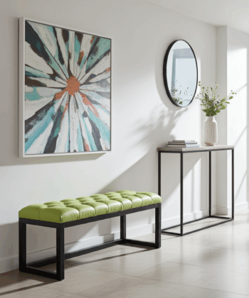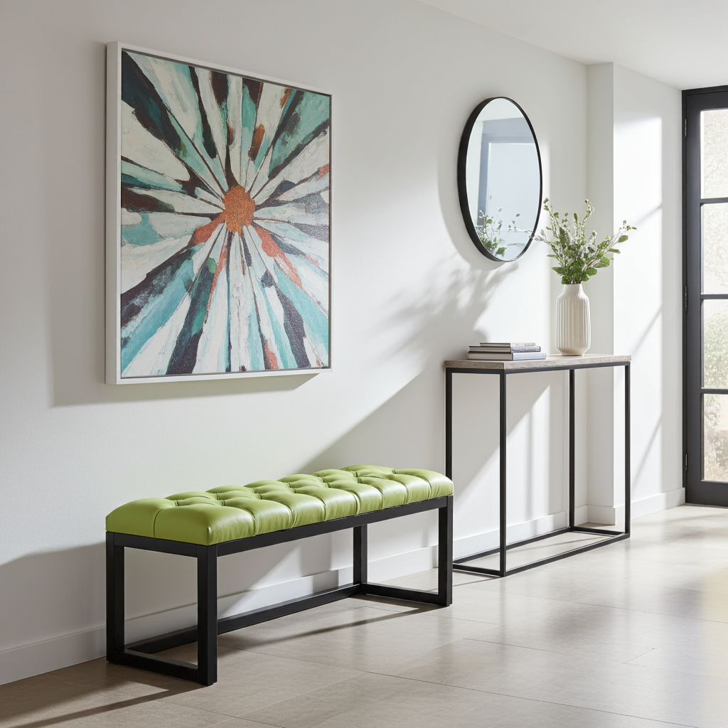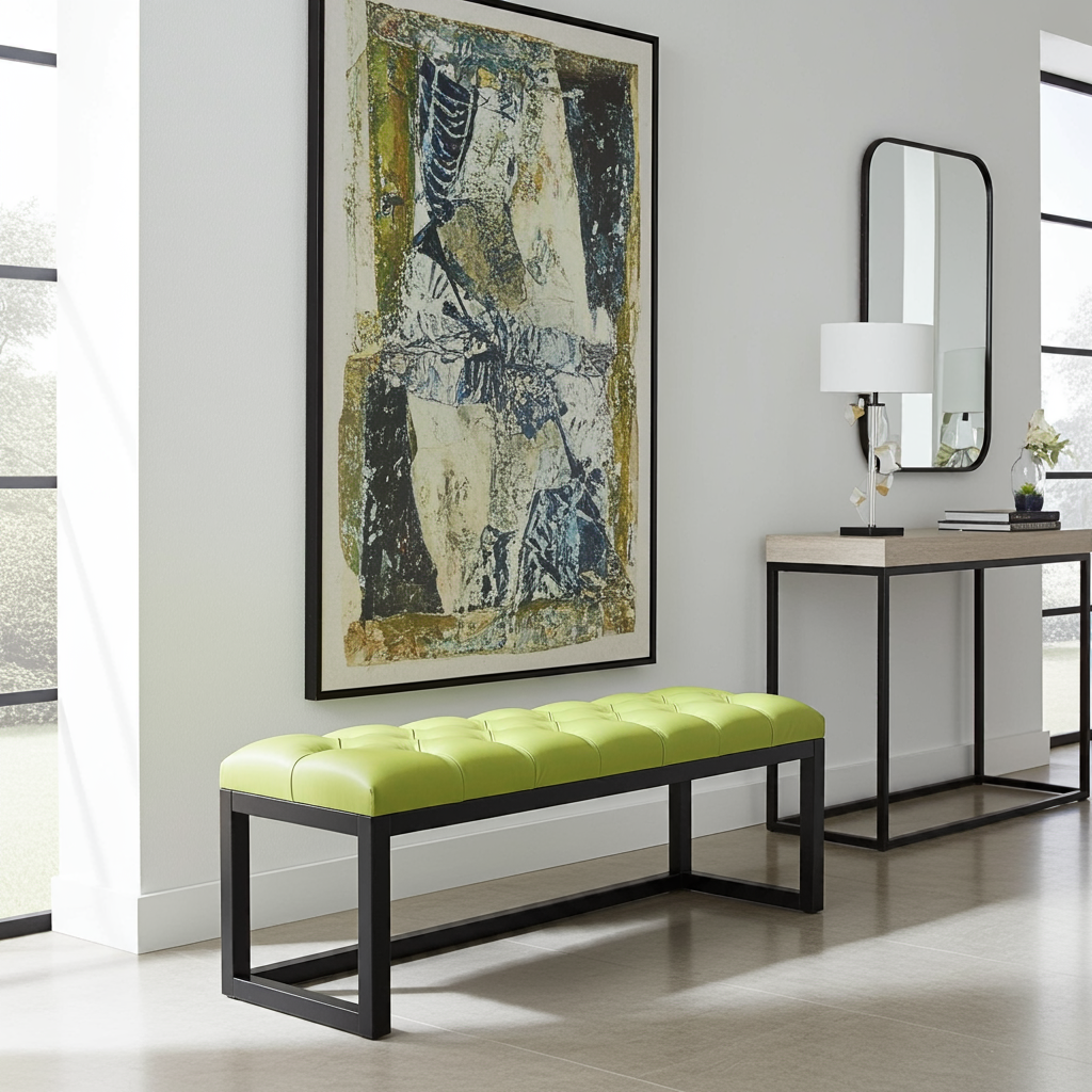 Artisan-Crafted Statement Bench with Vibrant Lime Eco-Leather Tufting and Ebony Alder Construction – Bold Sustainability for Modern Irish Homes