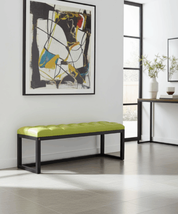 This remarkable bench revolutionizes sustainable design through its striking lime green eco-leather upholstery. Expert diamond-tufted artistry creates captivating texture and visual drama. Meanwhile, the ebony-finished alder frame provides sleek contemporary contrast. The vibrant chartreuse hue instantly energizes any space with eco-conscious flair.