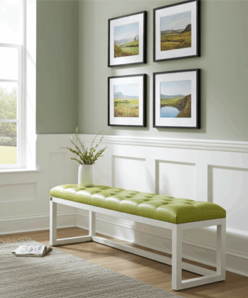 Artisan-Crafted Statement Bench with Diamond-Quilted Olive Eco-Leather and Pristine White Construction – Natural Luxury for Contemporary Irish Homes