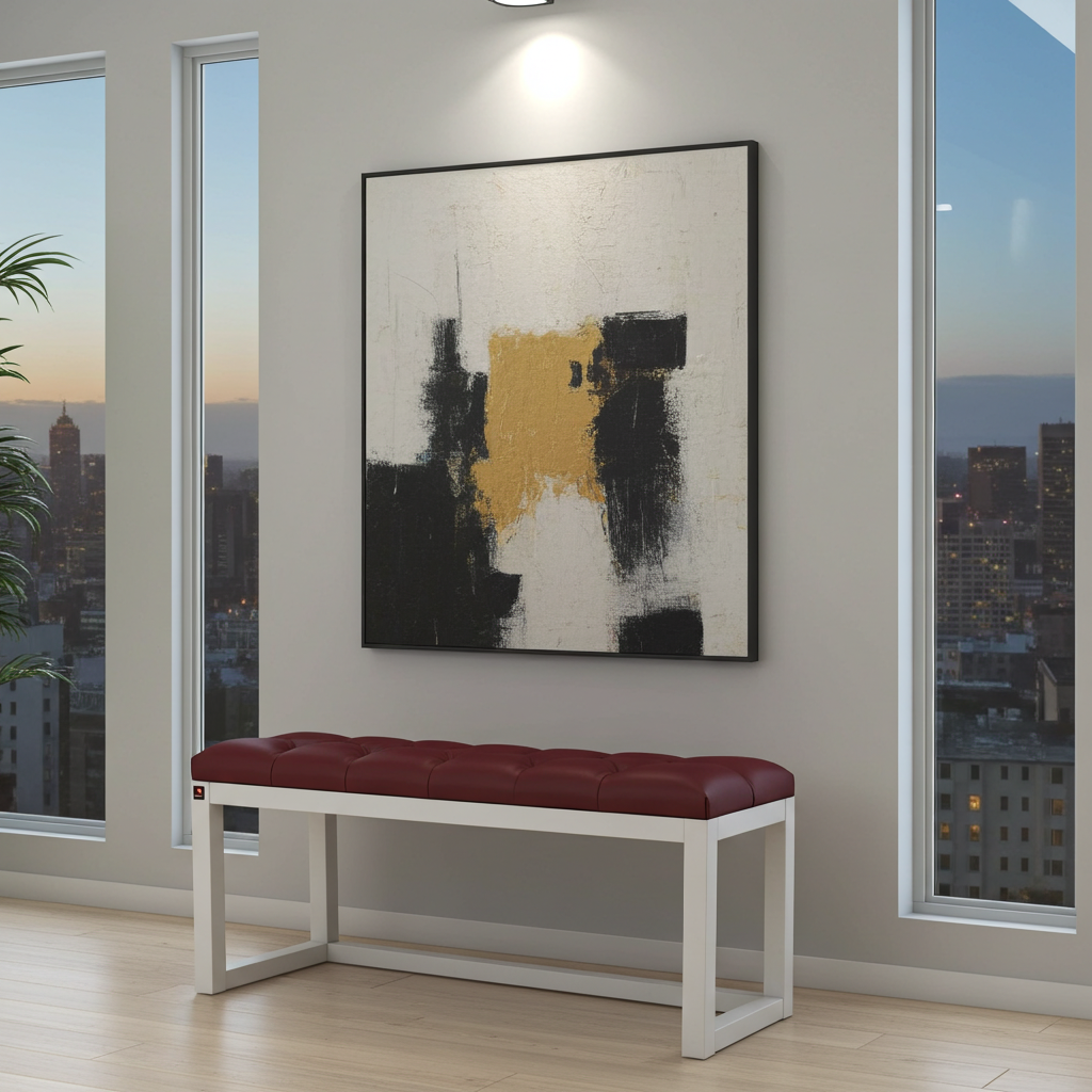 Handcrafted Designer Wooden Bench with Diamond-Tufted Red Eco-Leather and White Alder Frame – Bold Luxury for Contemporary Irish Homes