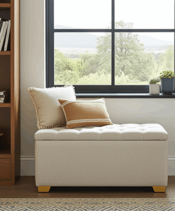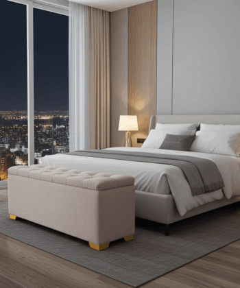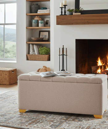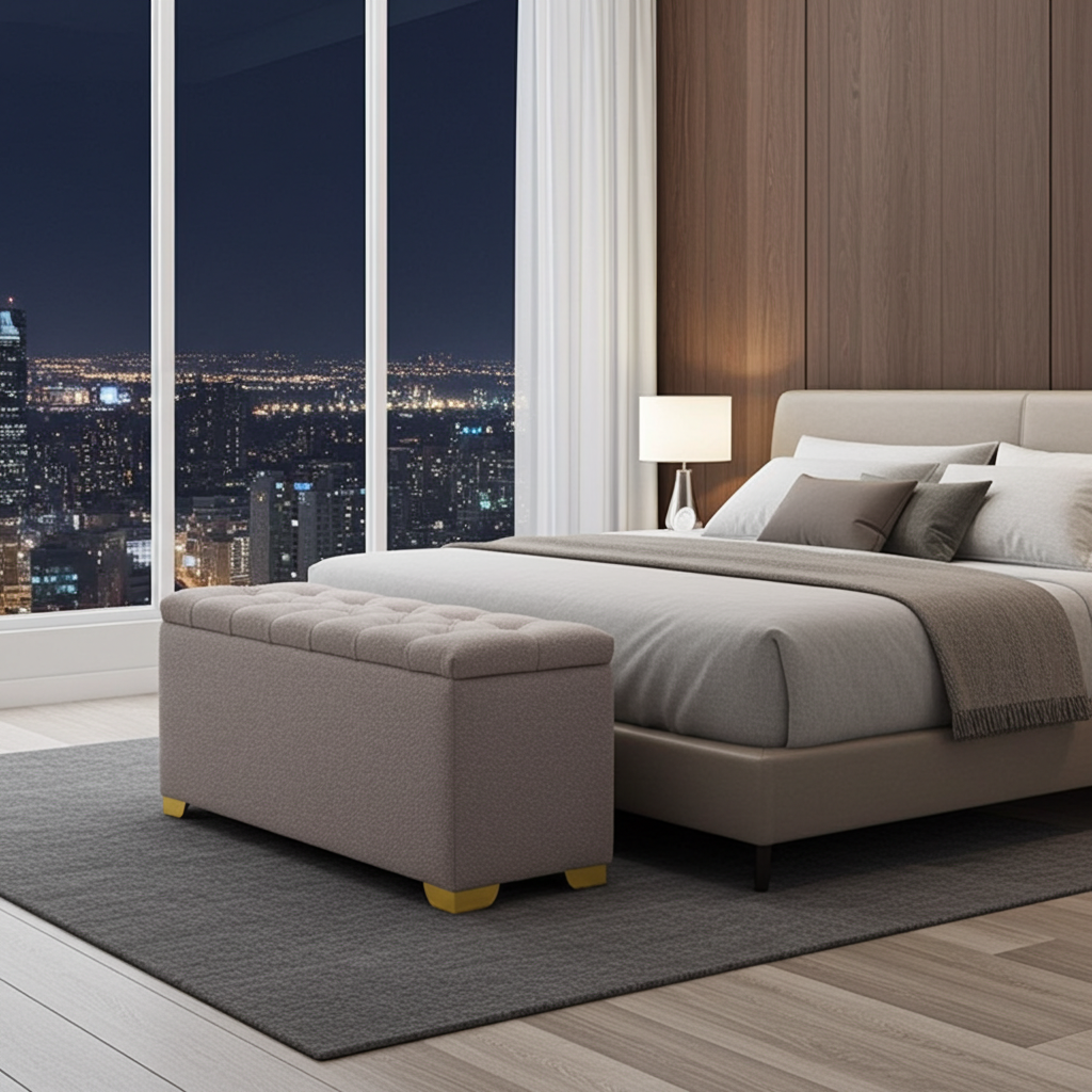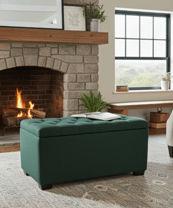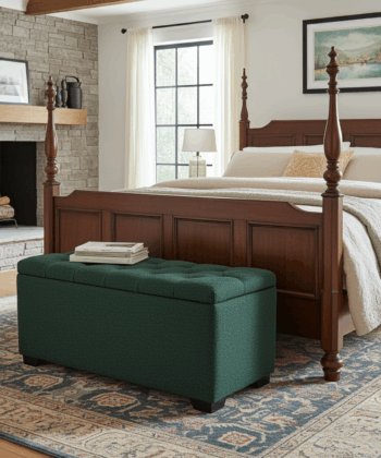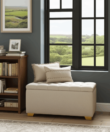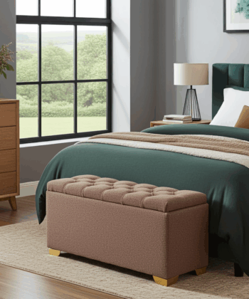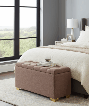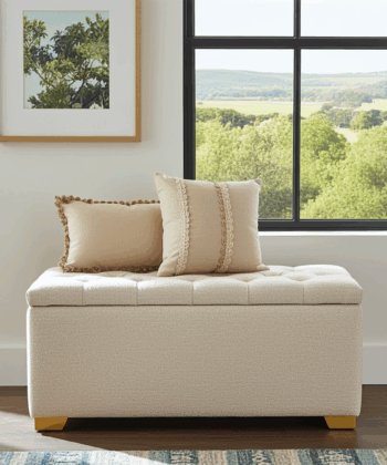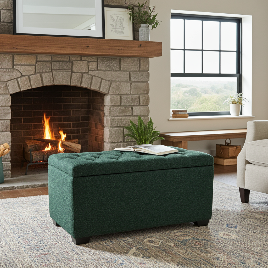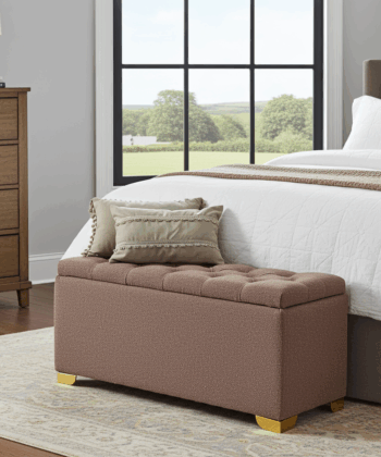 Inside, you’ll find a spacious compartment that easily stores blankets, pillows, books, or other essentials. The spring hinges make the lid easy and safe to open, so you can access your items effortlessly. This ottoman seats two people comfortably, making it perfect for extra seating in your living room, bedroom, or entryway.