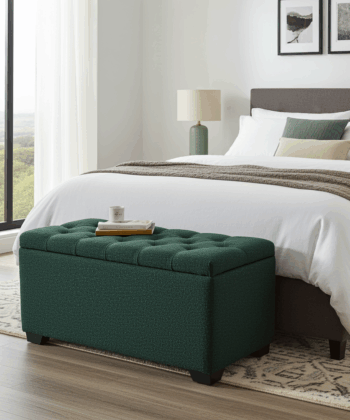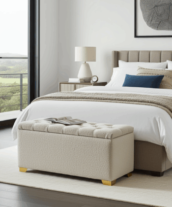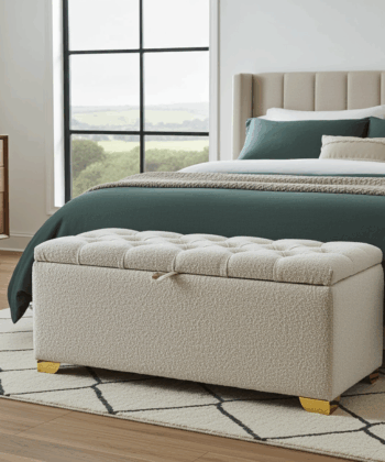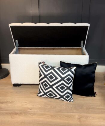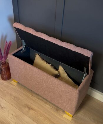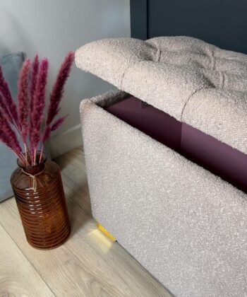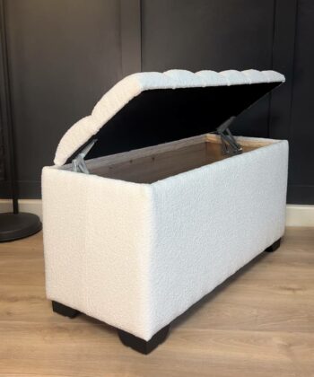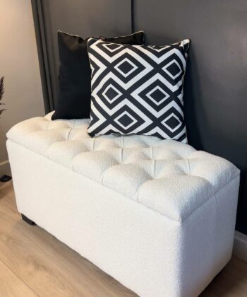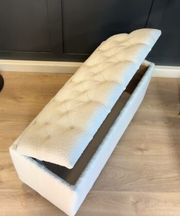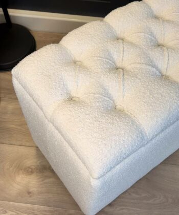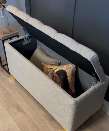 Upgrade your space with the Bouclé Ottoman with Storage from PouffeLove. This elegant bench is more than just a stylish addition; it’s a smart storage solution for Irish homes. The ottoman is made from sturdy 1.6cm MDF board, which guarantees long-lasting durability and stability. Its high-quality bouclé fabric upholstery is soft, warm, and inviting, adding a cosy touch to any room.