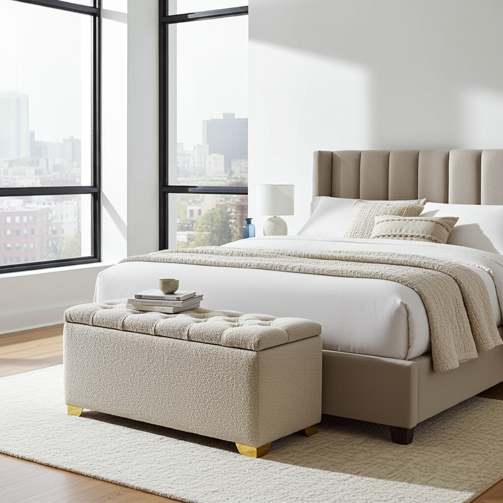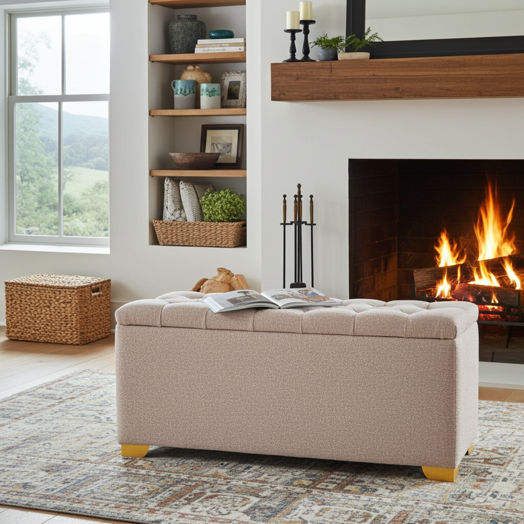 Elegant Bouclé Storage Ottoman: Style and Practicality for Every Room