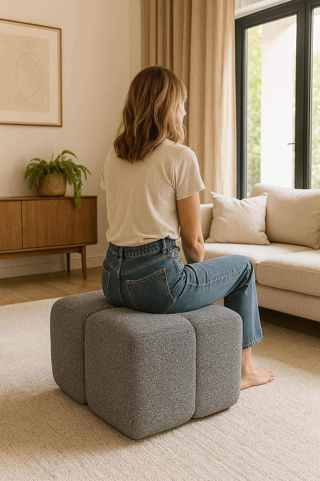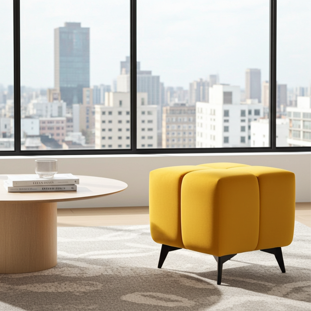 Modern Velvet Bubble Pouffe – Unique Cube Ottoman, Custom Colors & Legs, 52x52x50 cm