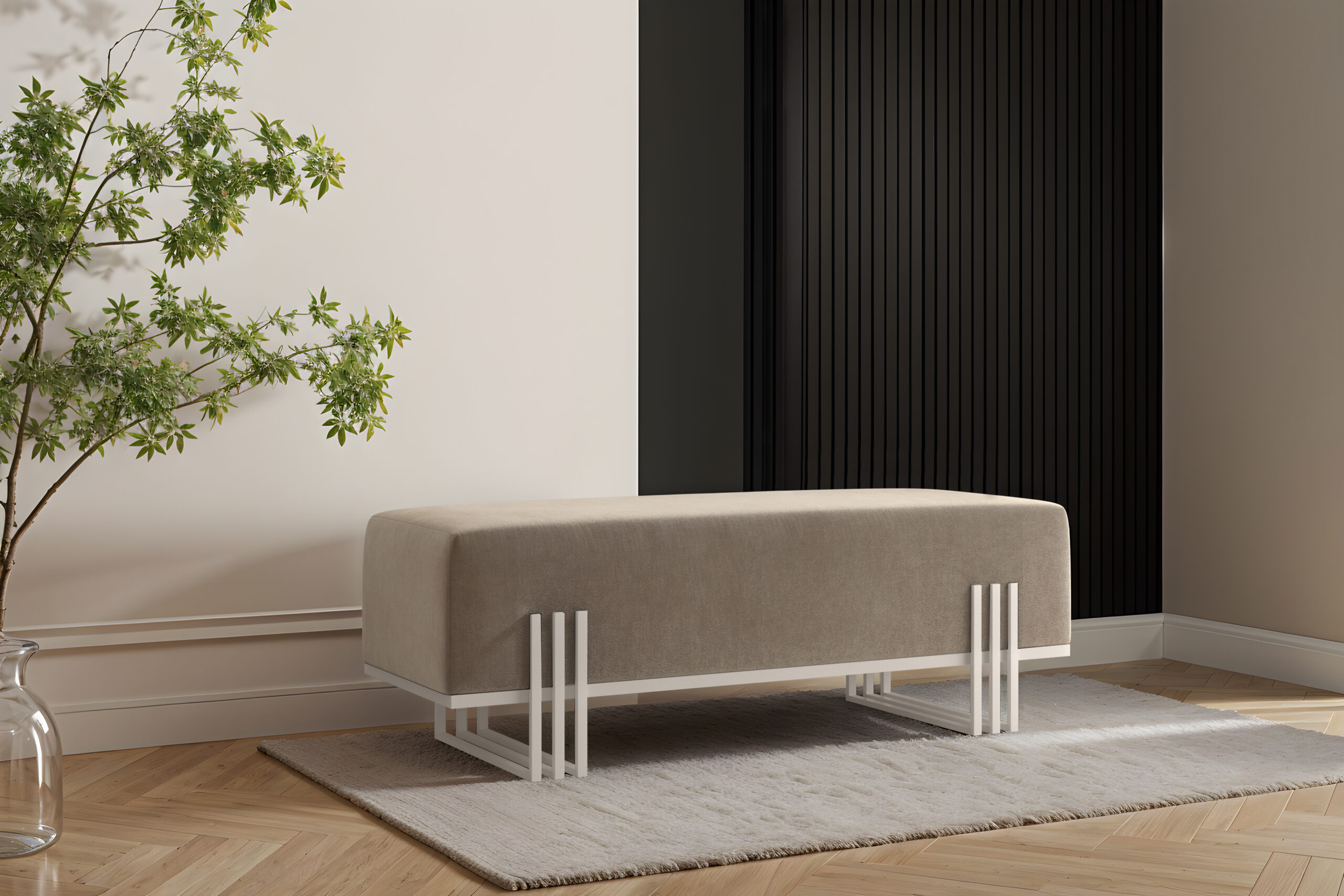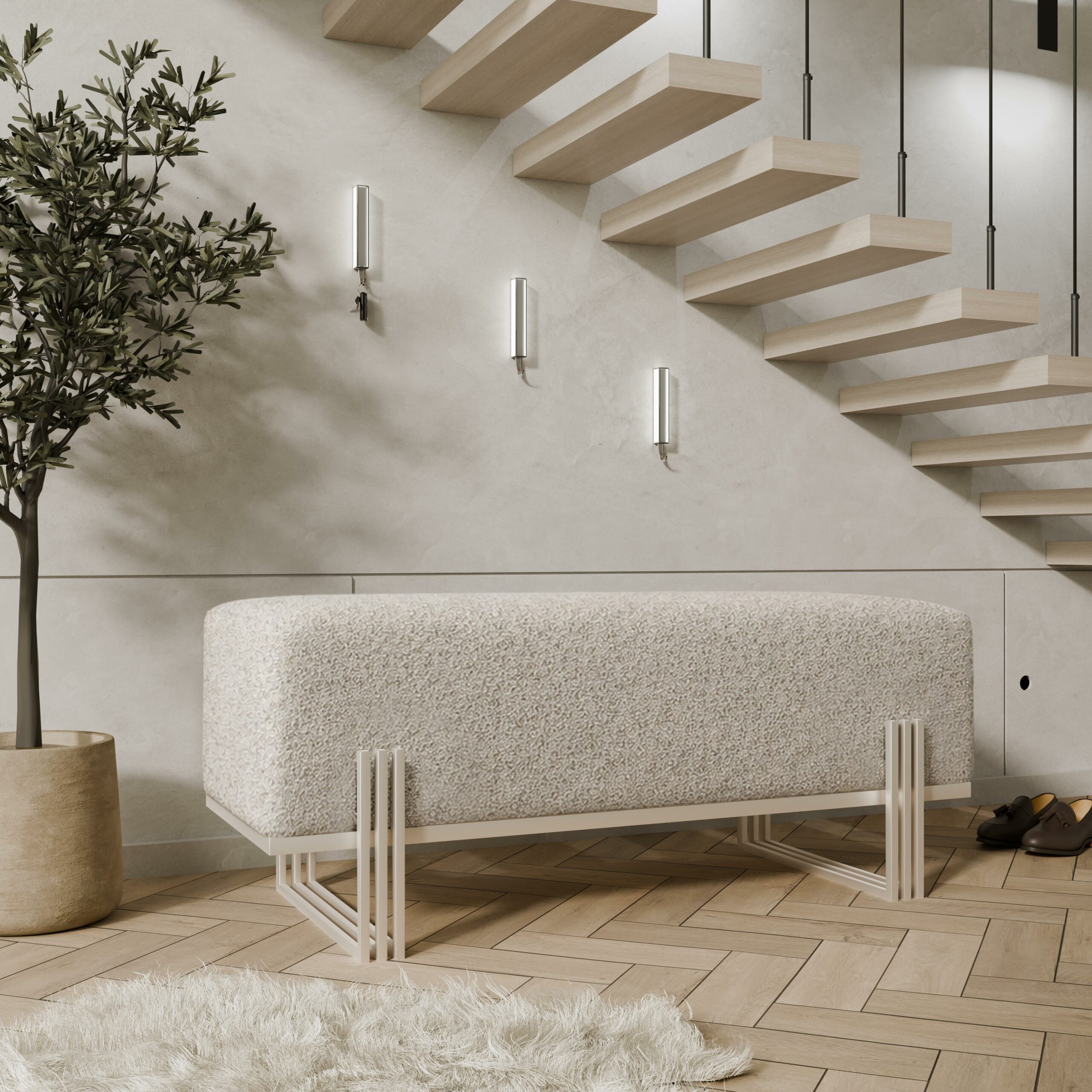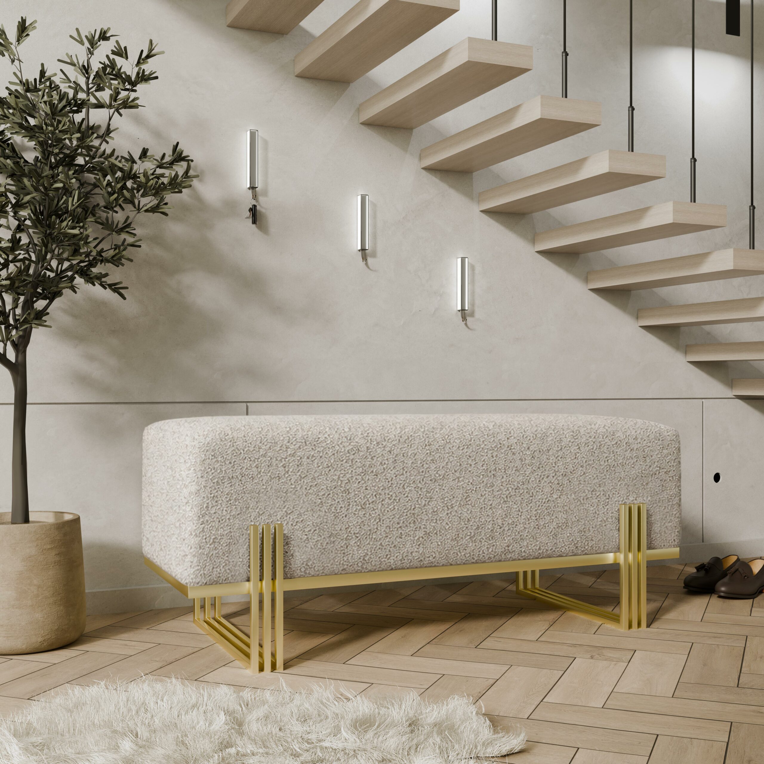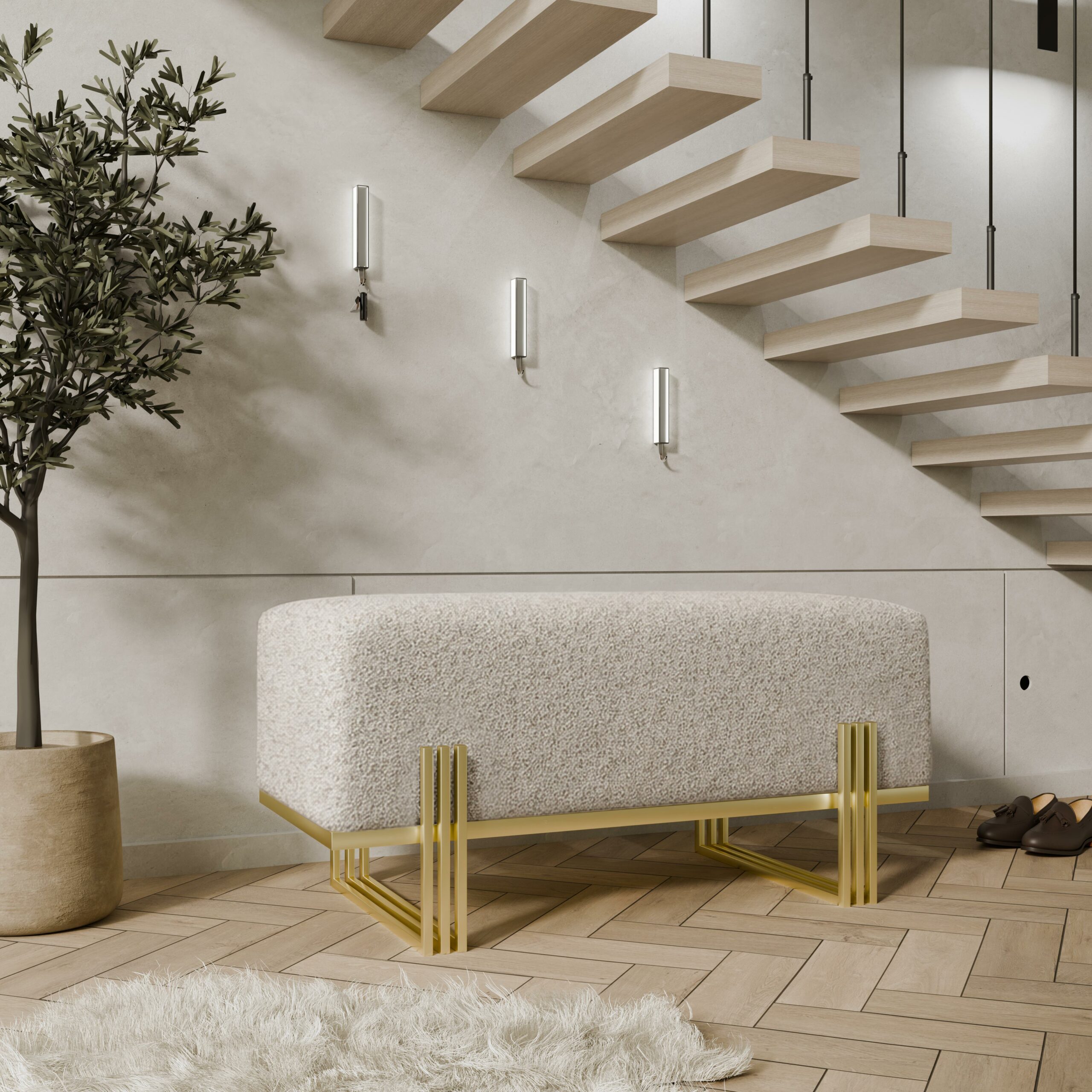 Aurora Modern Extended 100cm Cream Upholstered Bench with Glamorous Gold Powder-Coated Metal Frame – Perfect Long Hallway Seating, Bedroom End-of-Bed Ottoman or Spacious Living Room Accent (Custom Colors and Materials Available)