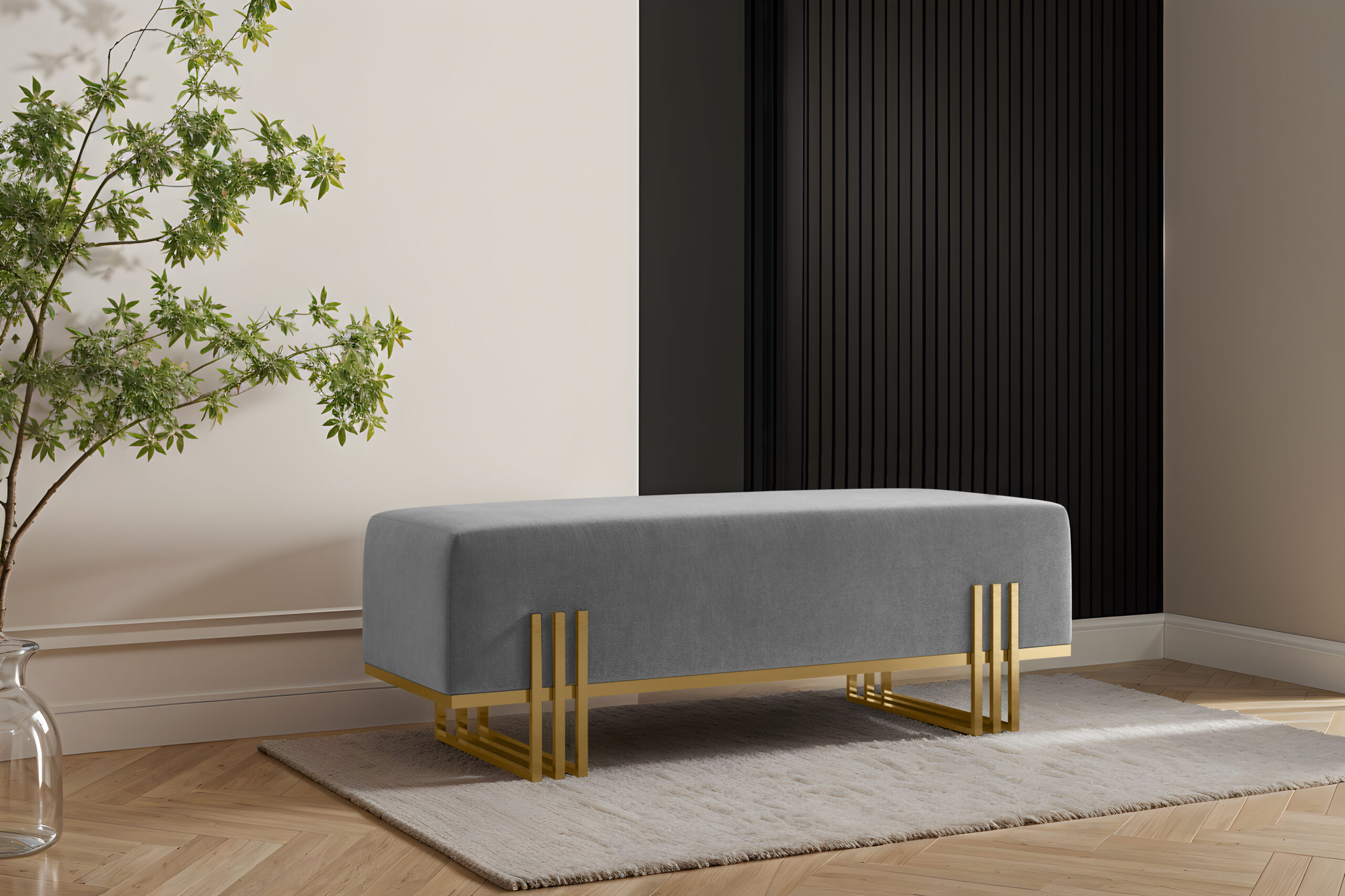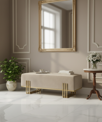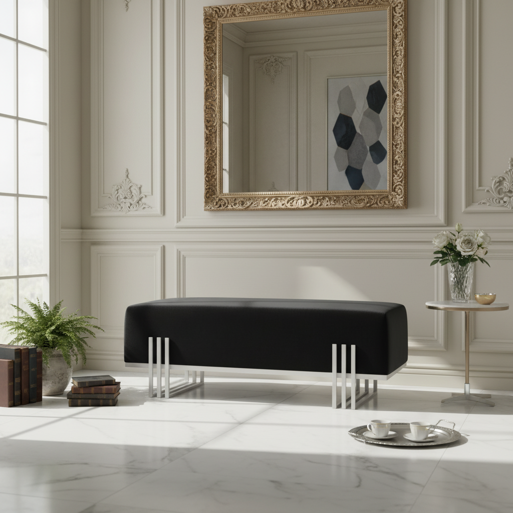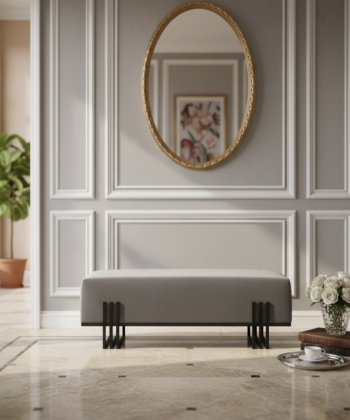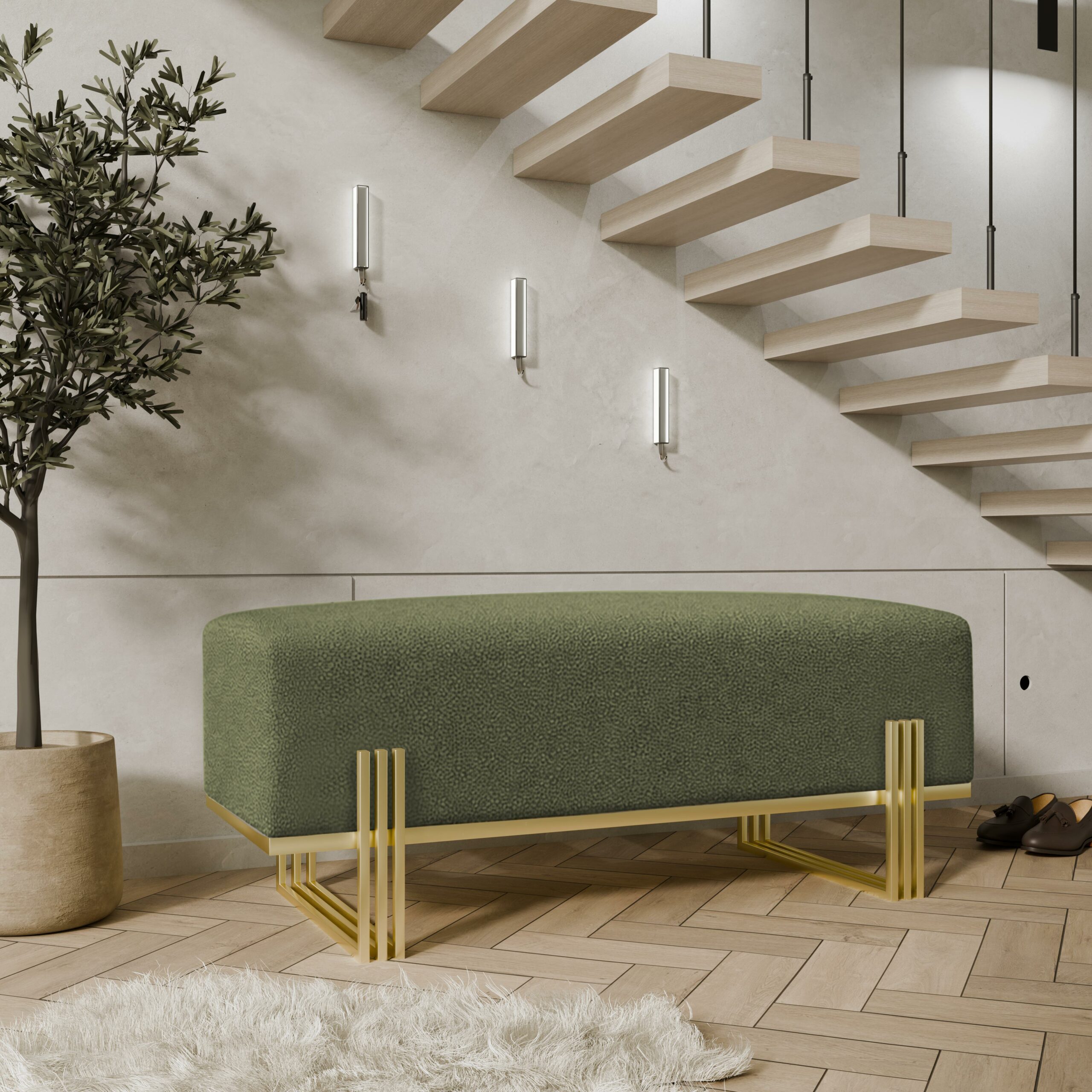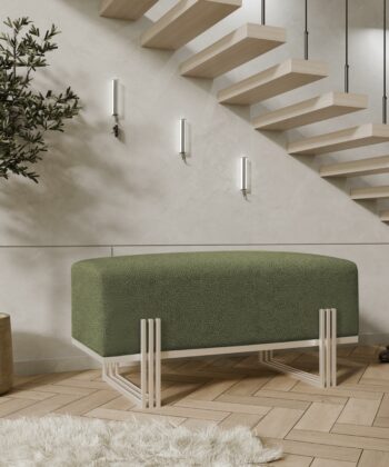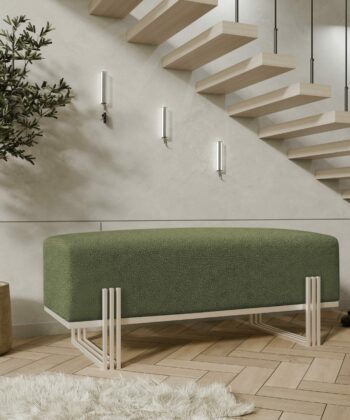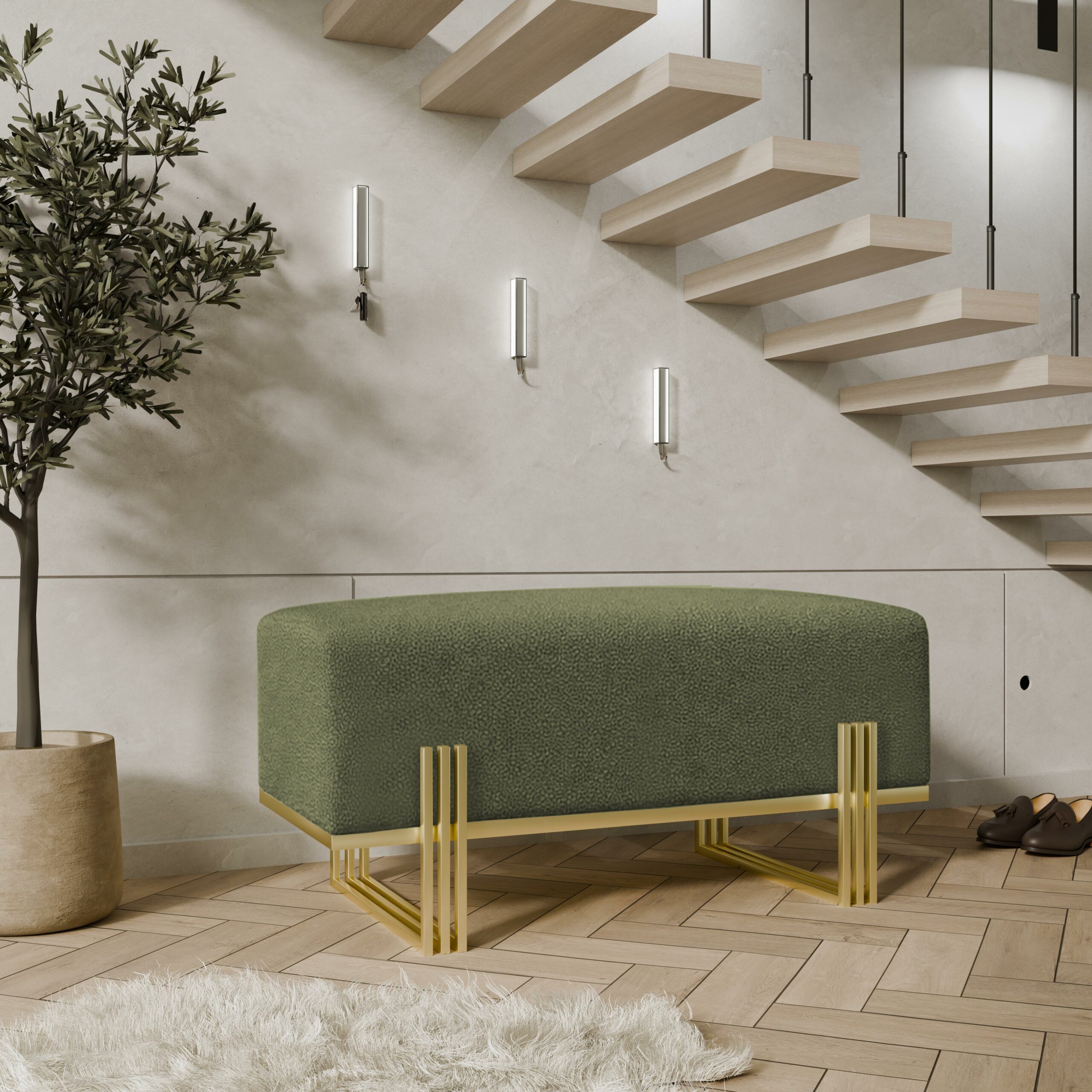 Make a statement with the Aurora Modern Upholstered Bench in extended 100×35×47 cm size. This longer version offers generous seating for two plus decorative versatility. First, the expansive rectangular seat welcomes guests, stores blankets, or displays trays elegantly. Meanwhile, the signature gold metal base delivers architectural glamour perfect for sophisticated spaces.
