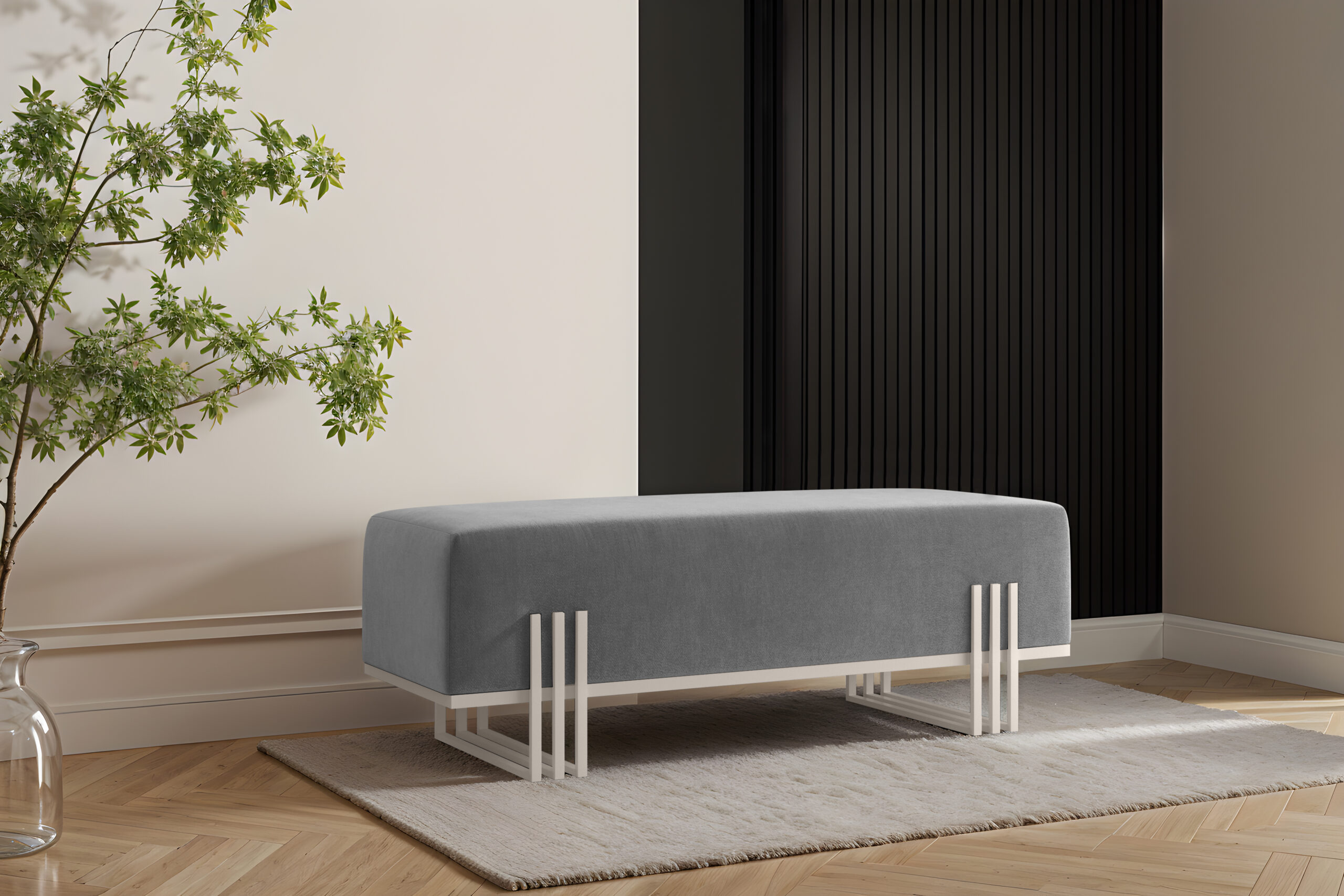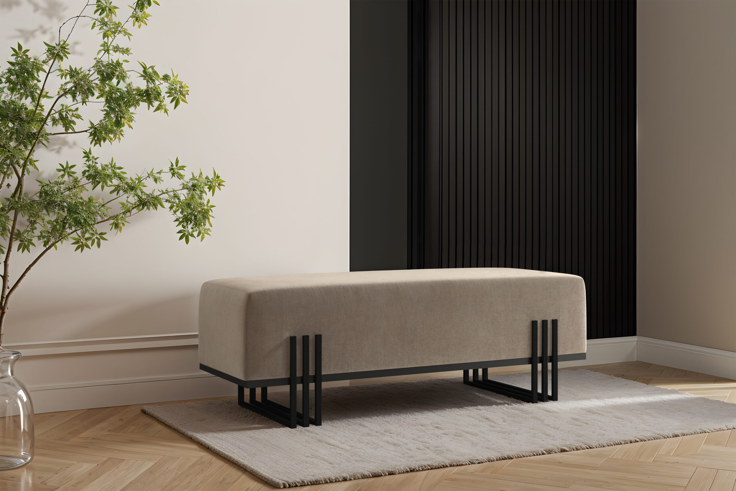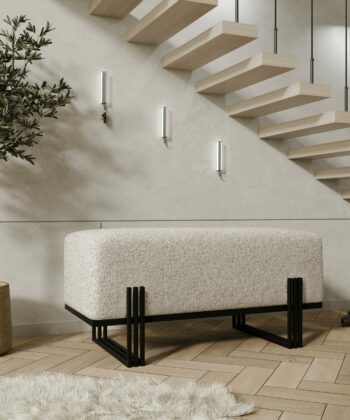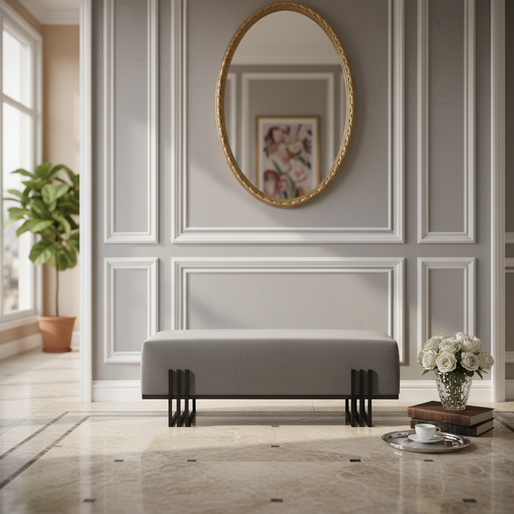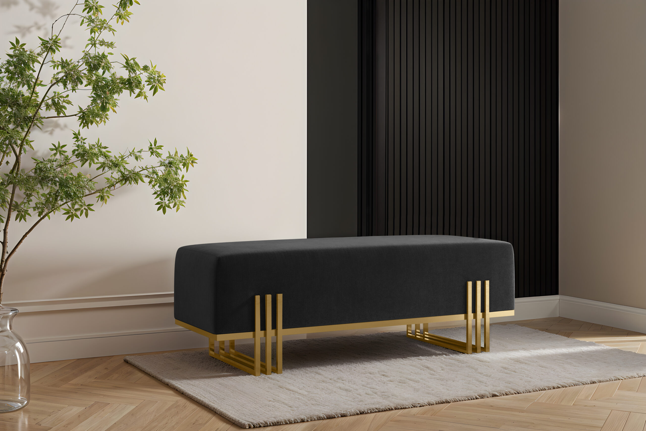 Make a statement with the Aurora Modern Upholstered Bench in extended 100×35×47 cm size. This longer version offers generous seating for two plus decorative versatility. First, the expansive rectangular seat welcomes guests, stores blankets, or displays trays elegantly. Meanwhile, the signature gold metal base delivers architectural glamour perfect for sophisticated spaces.