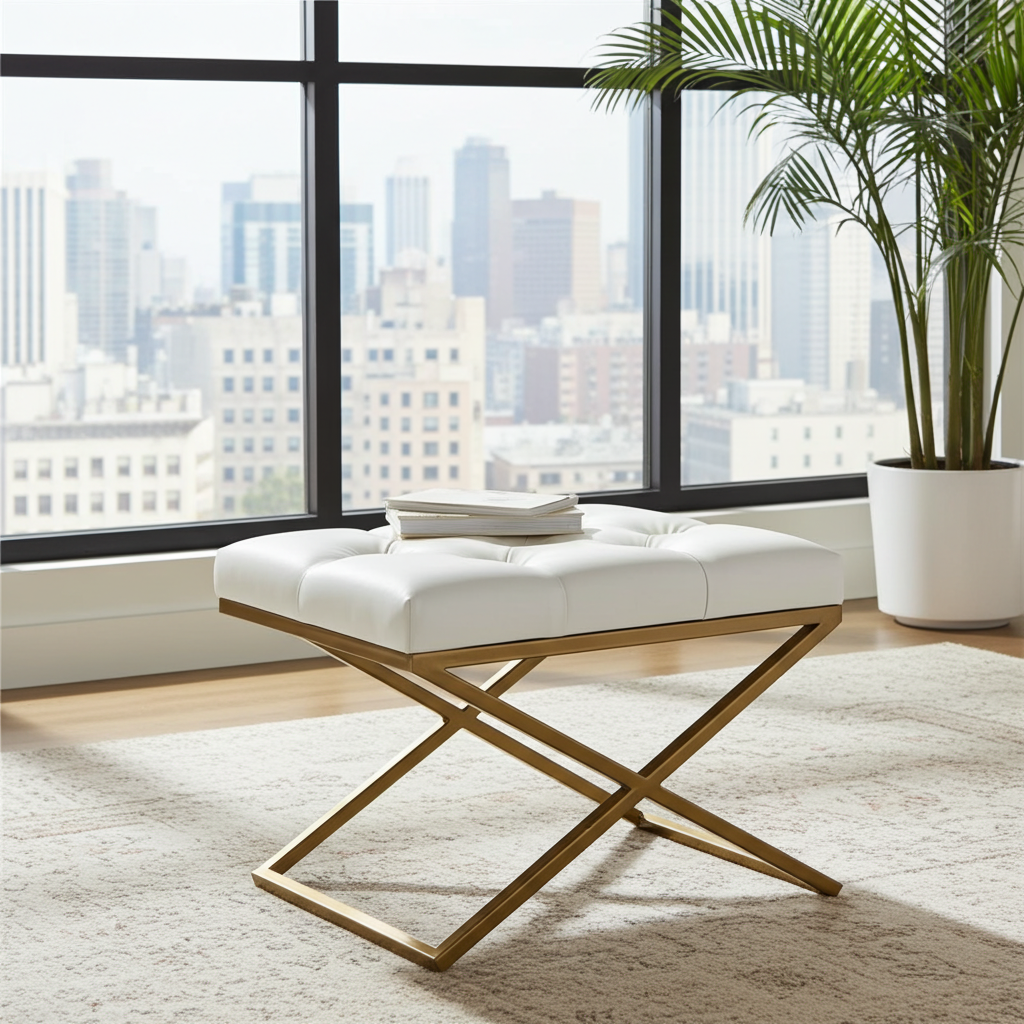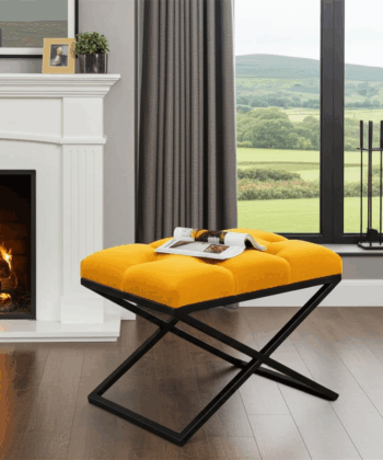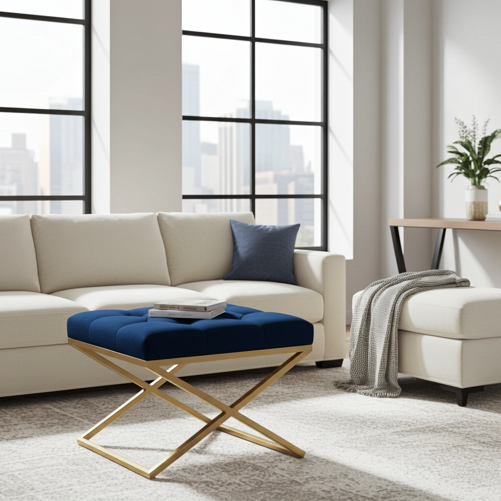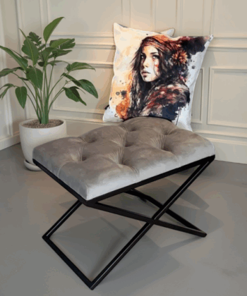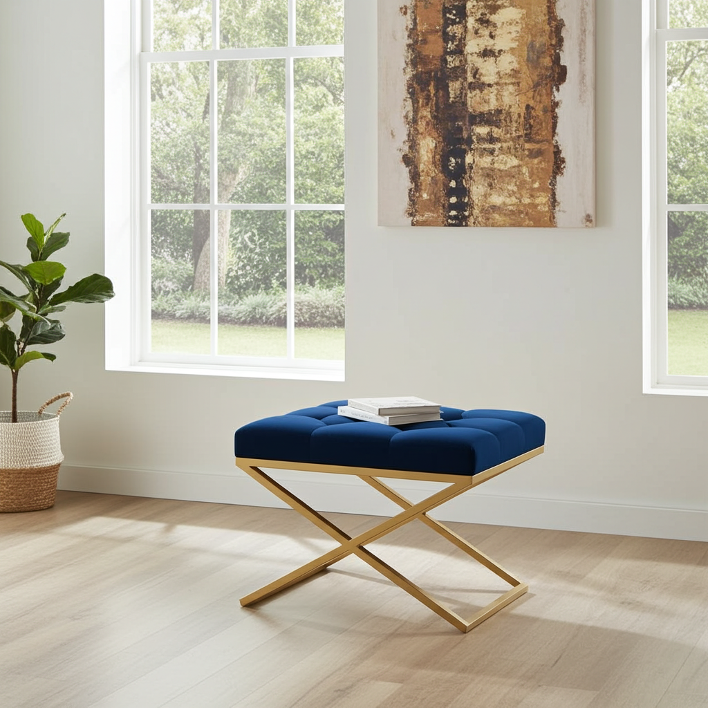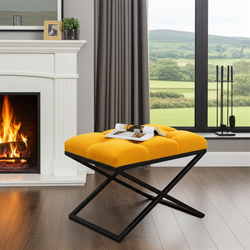 Experience modern luxury with our Velvet Ottoman with Metal Frame, meticulously handcrafted for unmatched quality and style. The one-piece, powder-coated metal frame is completely screw-free, providing superior stability, durability, and a sleek, contemporary look. The plush, button-tufted velvet upholstery adds a sophisticated touch, making this ottoman a standout piece in any setting.