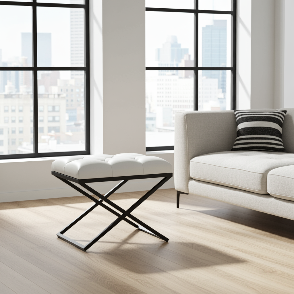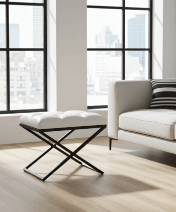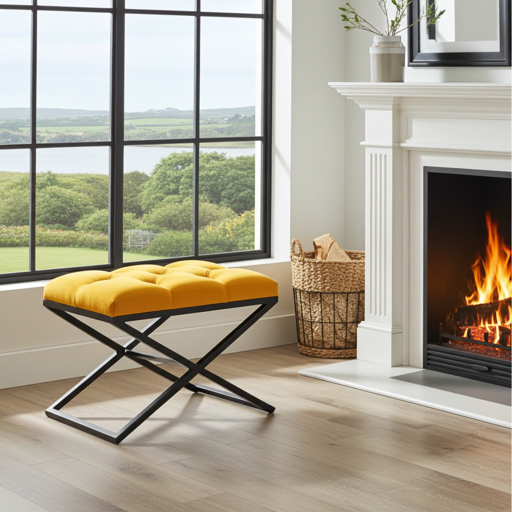 The powder-coated finish ensures resistance to wear and tear, while the handmade construction guarantees attention to every detail. Whether you need a stylish footstool, an elegant accent, or practical extra seating, this ottoman delivers on all fronts.