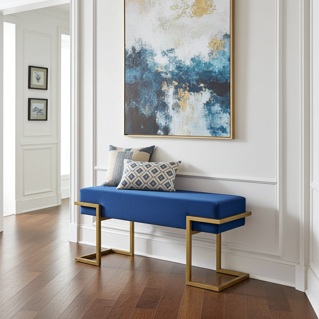 Discover the Axon Modern Velvet Bench; in fact, it’s the perfect blend of contemporary design and luxurious comfort. This exquisite piece features a plush, upholstered seat that appears to float effortlessly within its sleek, geometric frame. Moreover, its clean lines and minimalist silhouette make it a truly versatile addition to any room. For this reason, it provides a sophisticated touch without overwhelming your space.