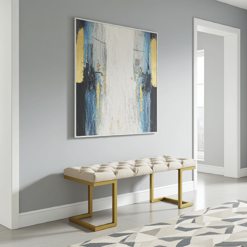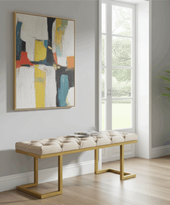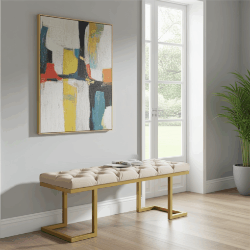 Elegant Beige Velour Bench with Gold Frame: Luxury Seating for Irish Homes