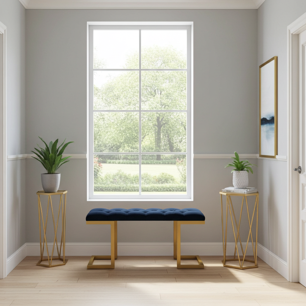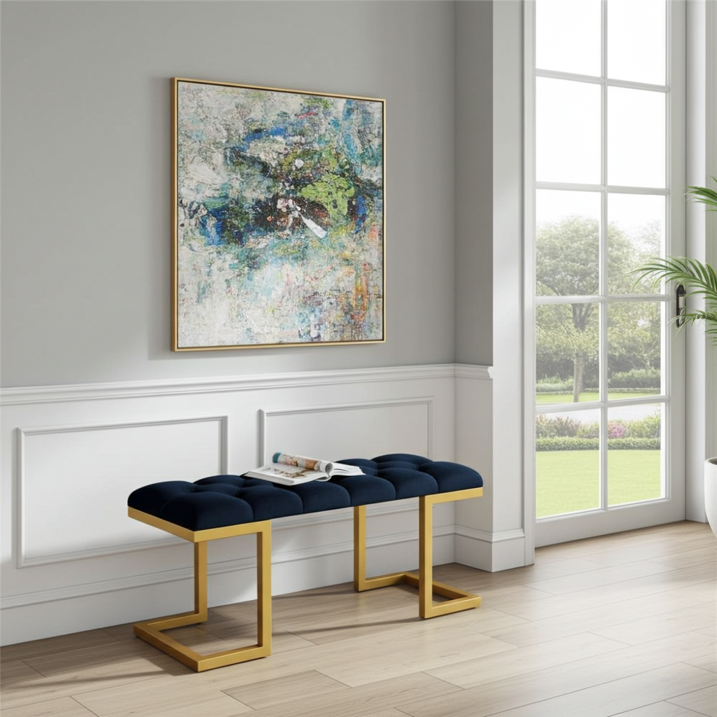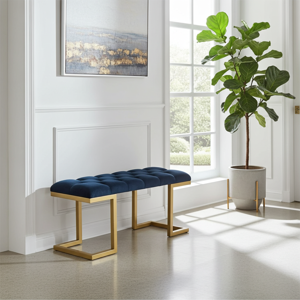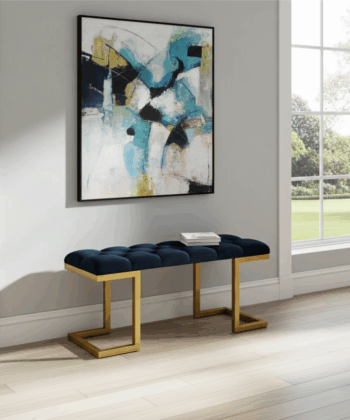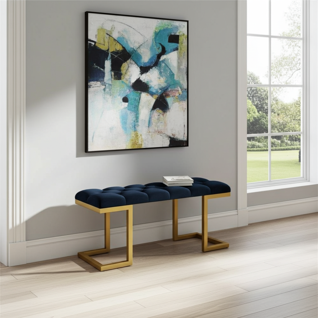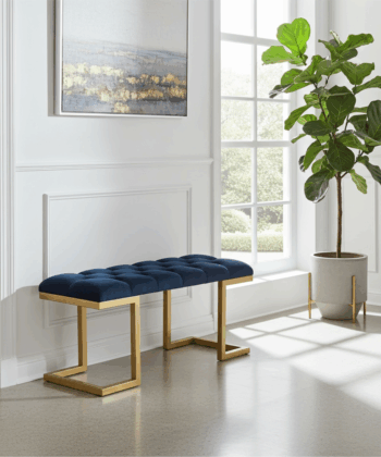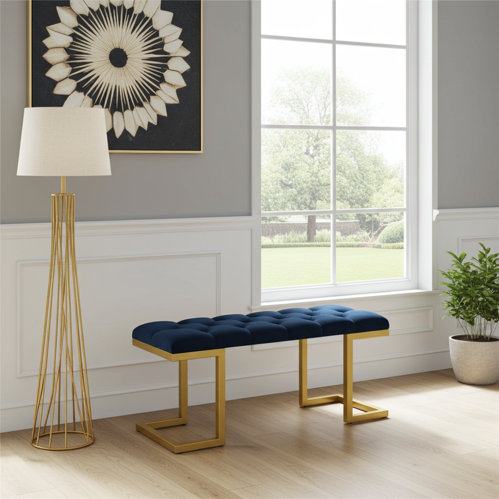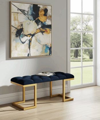 The premium velour upholstery is soft and easy to maintain. Additionally, the sturdy gold frame resists wear and keeps its shine over time. Because of its compact size, this bench works well in both small and spacious interiors. Moreover, the striking black and gold combination creates a sophisticated statement for Irish homes.