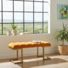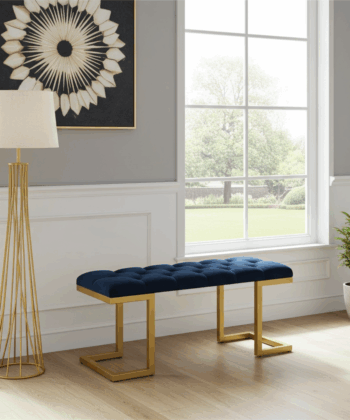 Transform your space with this black velour bench from PouffeLove. The plush, button-tufted seat delivers a rich, modern look. Its gold powder-coated metal frame stands out, adding a bold accent to any room. This bench measures 100cm in length, 40cm in width, and 45cm in height. As a result, it provides generous seating while fitting easily in hallways, bedrooms, or living rooms.