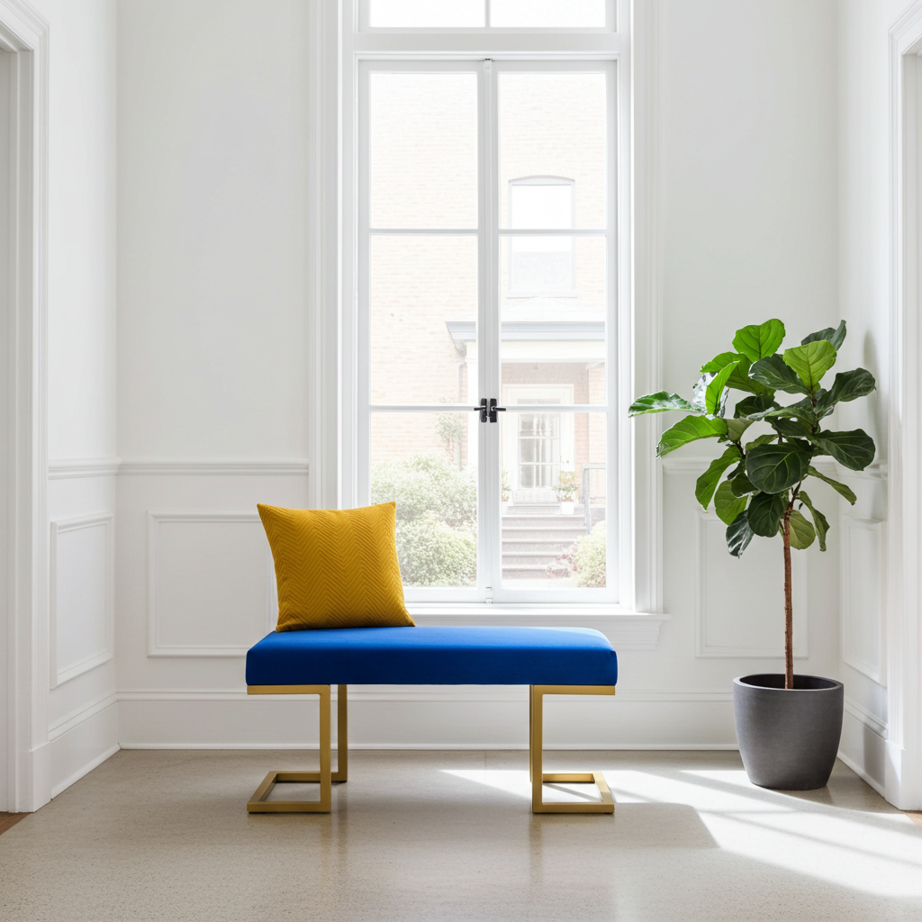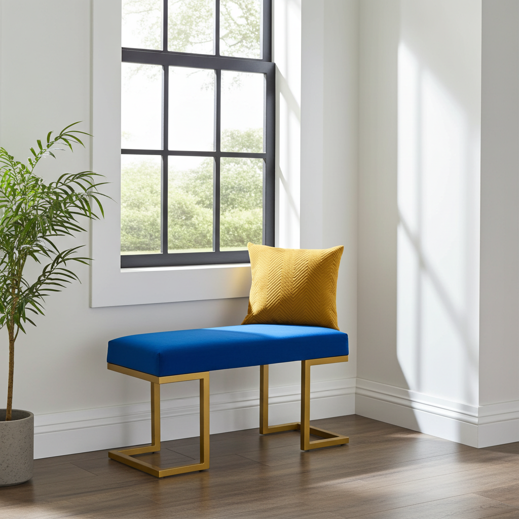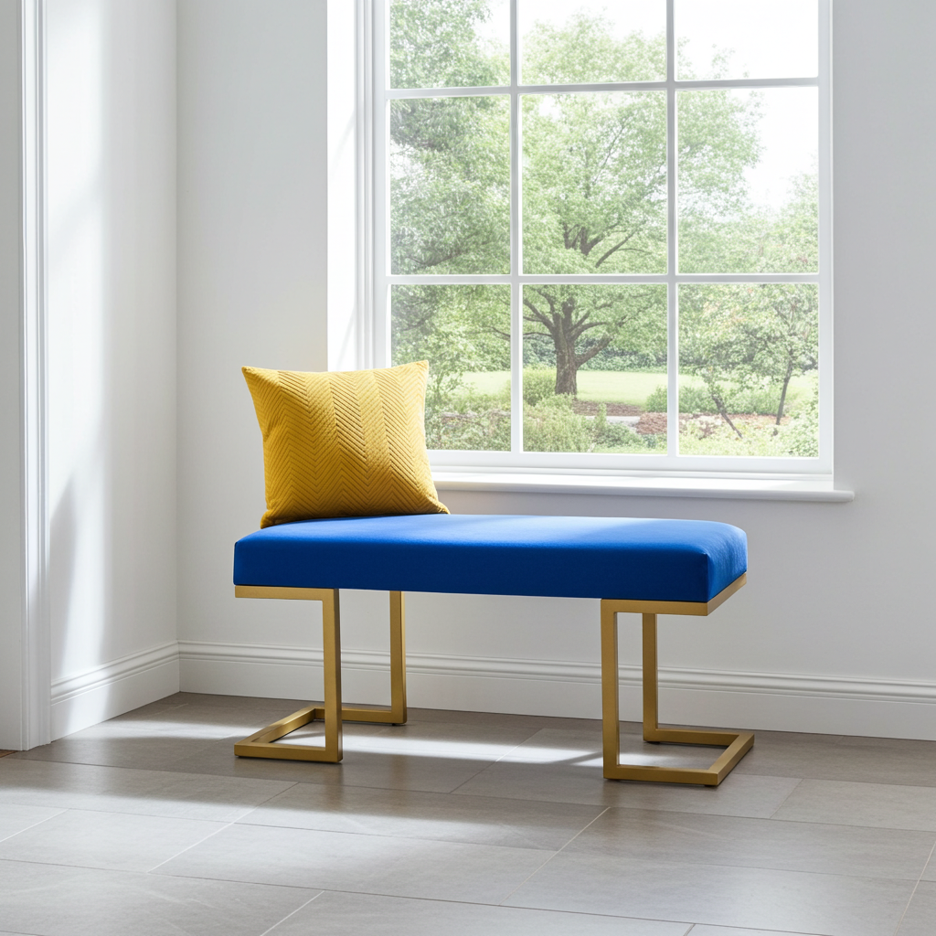 Blue Velour Bench with Gold Frame: Elegant Seating for Irish Homes